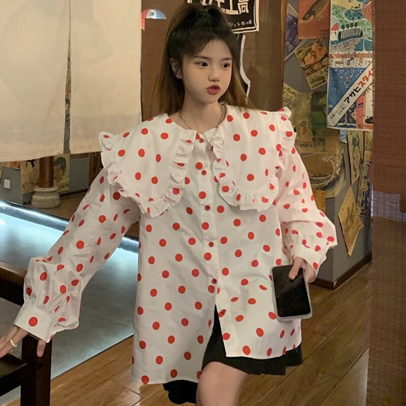 ノミクマ 水玉 ピーターパン 衿 ドール シャツ カジュアル 長袖 春 ブラウス 2022年 スイートデ ロング 大人ガーリー スウィート キュート スプリング 春物 kor99860377576