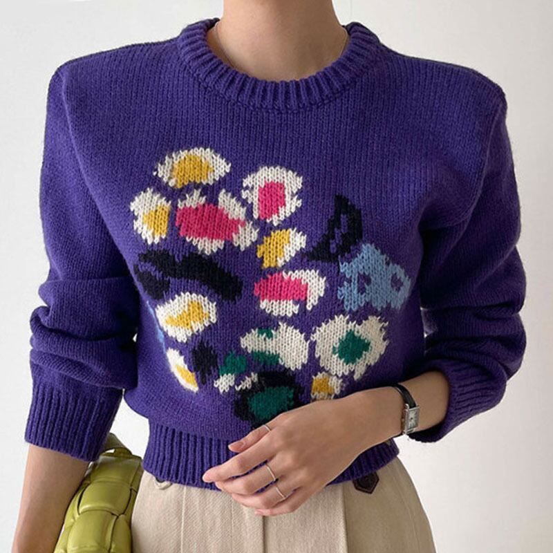 ノミクマ プルオーバー 秋冬 花柄 ヒットカラー プルオーバー カジュアル 長袖 ニットセーター 2021 ニット 6N727 ロング オータム 秋物 ウィンター 冬物 kor84706121042