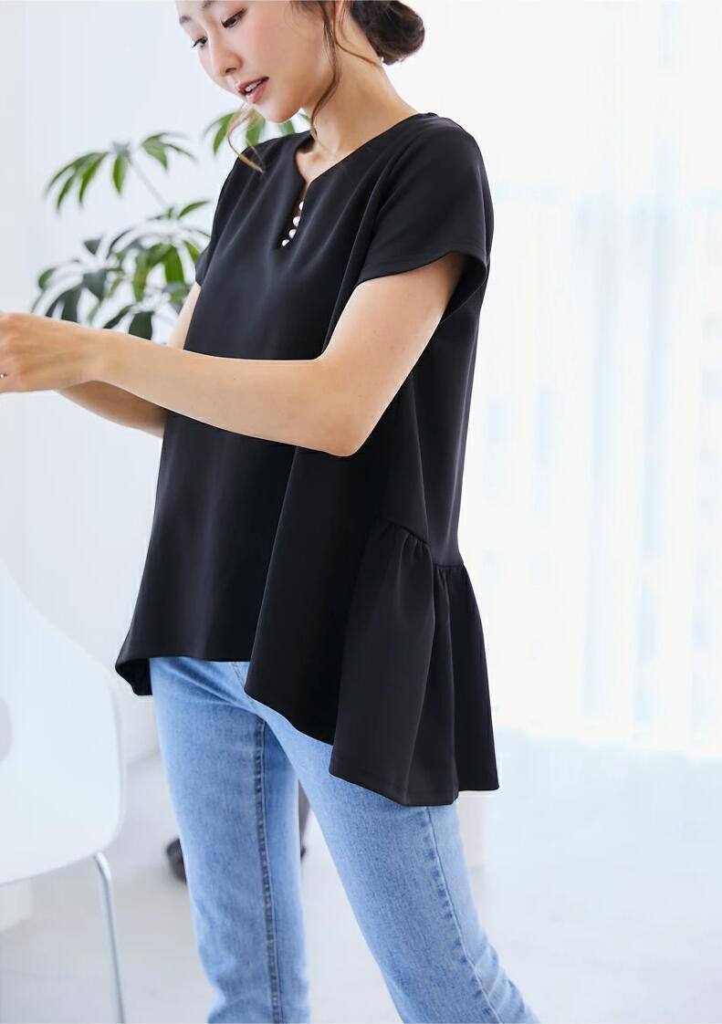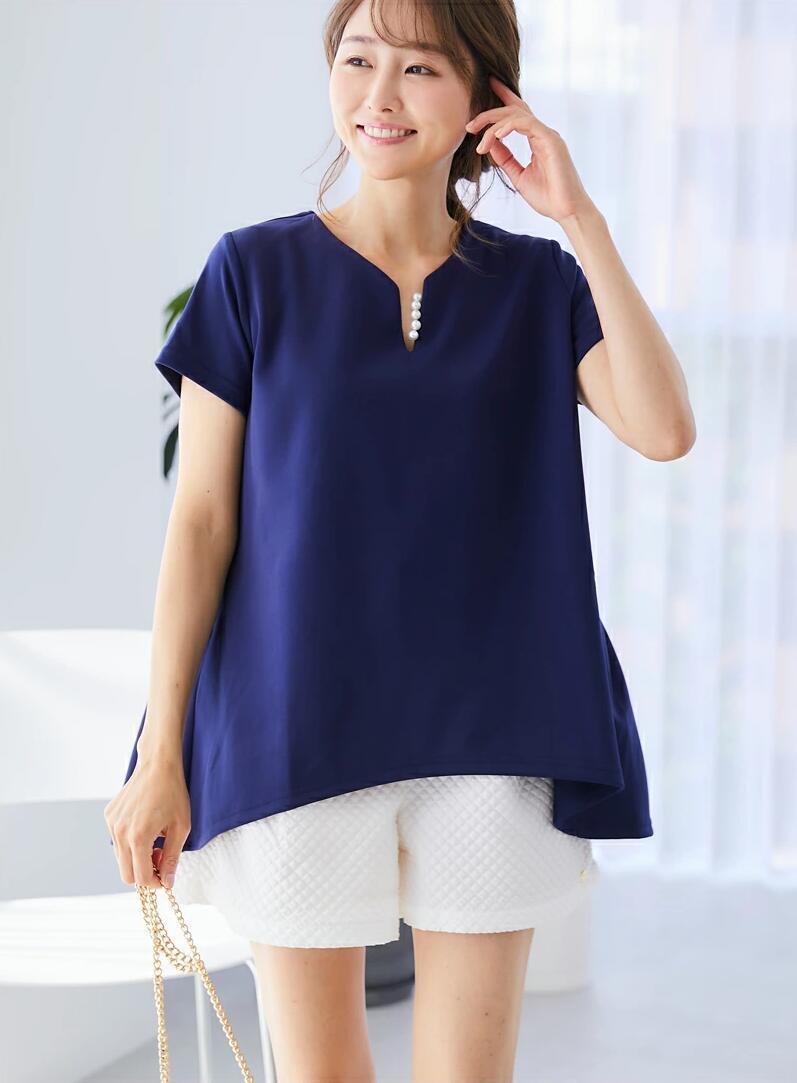 Nomikuma 2022 スタイル女性ブラウスシックなビーズ V ネック半袖 Dol シャツ因果無地プルオーバー Blusa ショート ハーフスリーブ Vネック ソリッドカラー kor15105744840