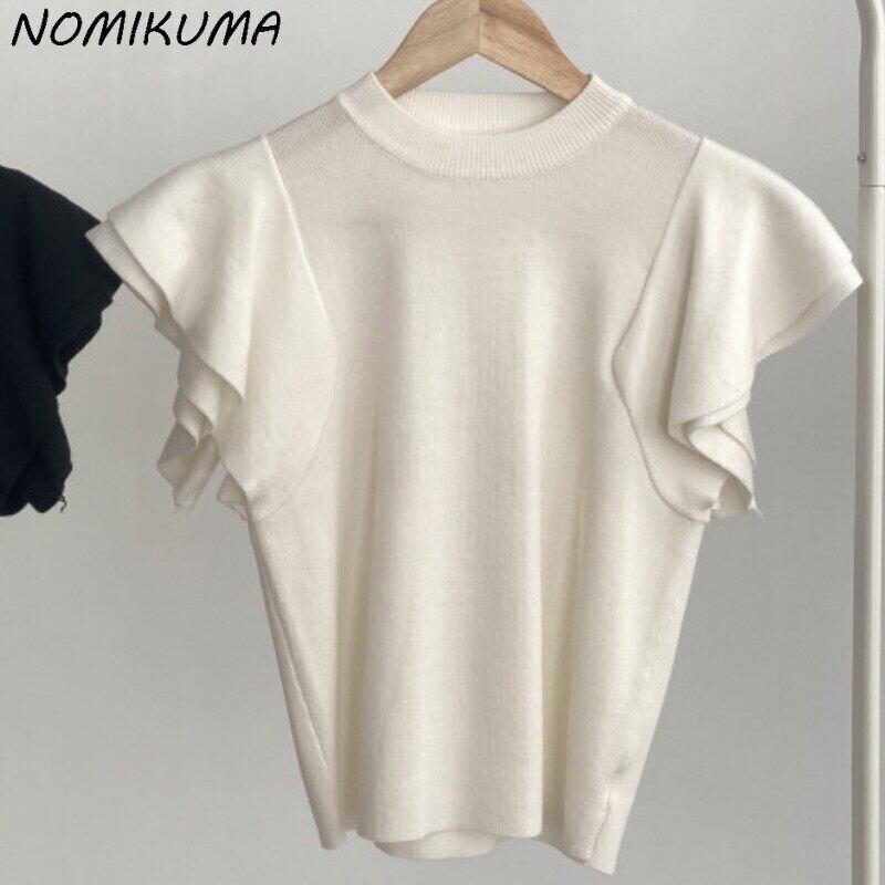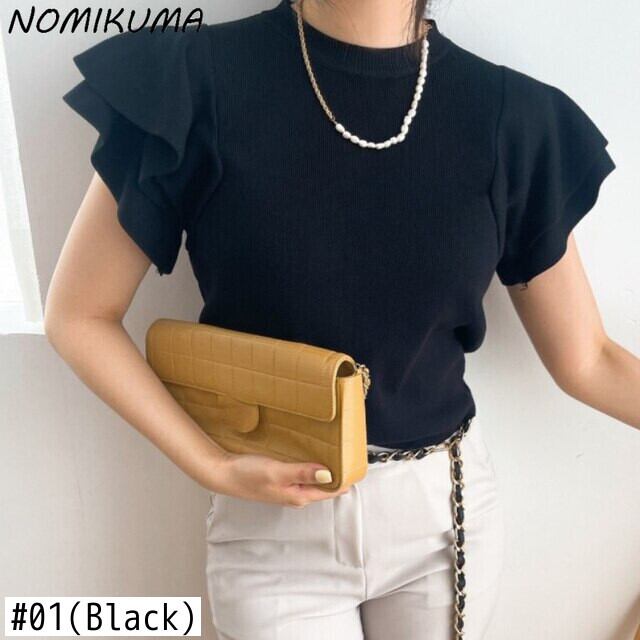 Nomikuma シックフライングスリーブスリム女性セーター因果 O ネックニット 2022 夏プルオーバーニットトップス サマー 夏物 Oネック kor47626774129