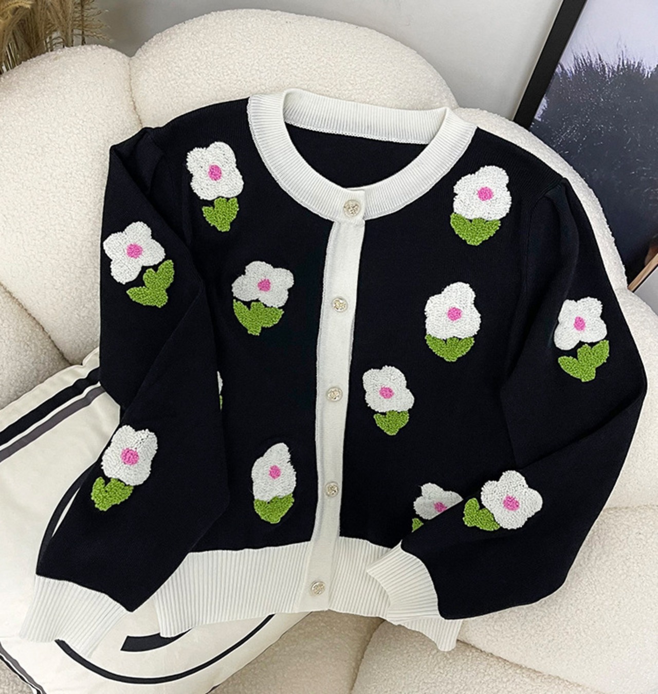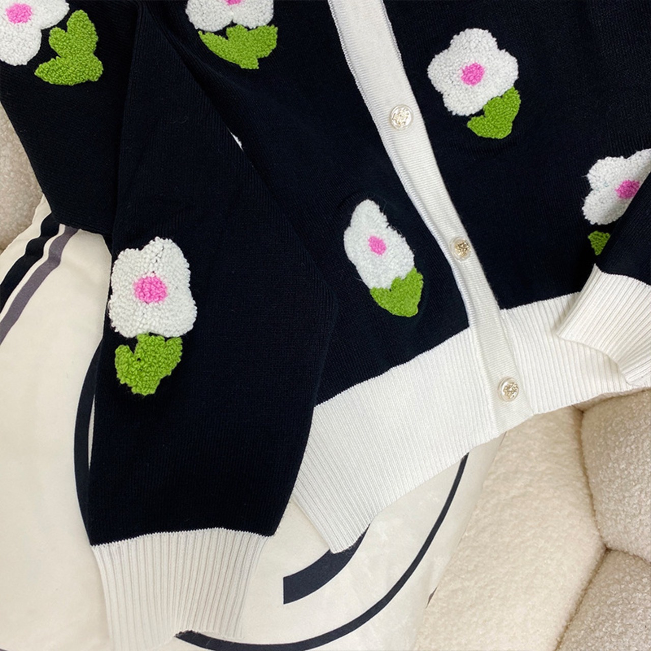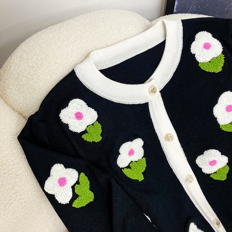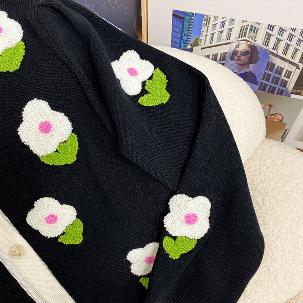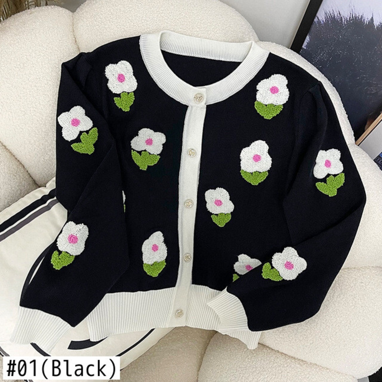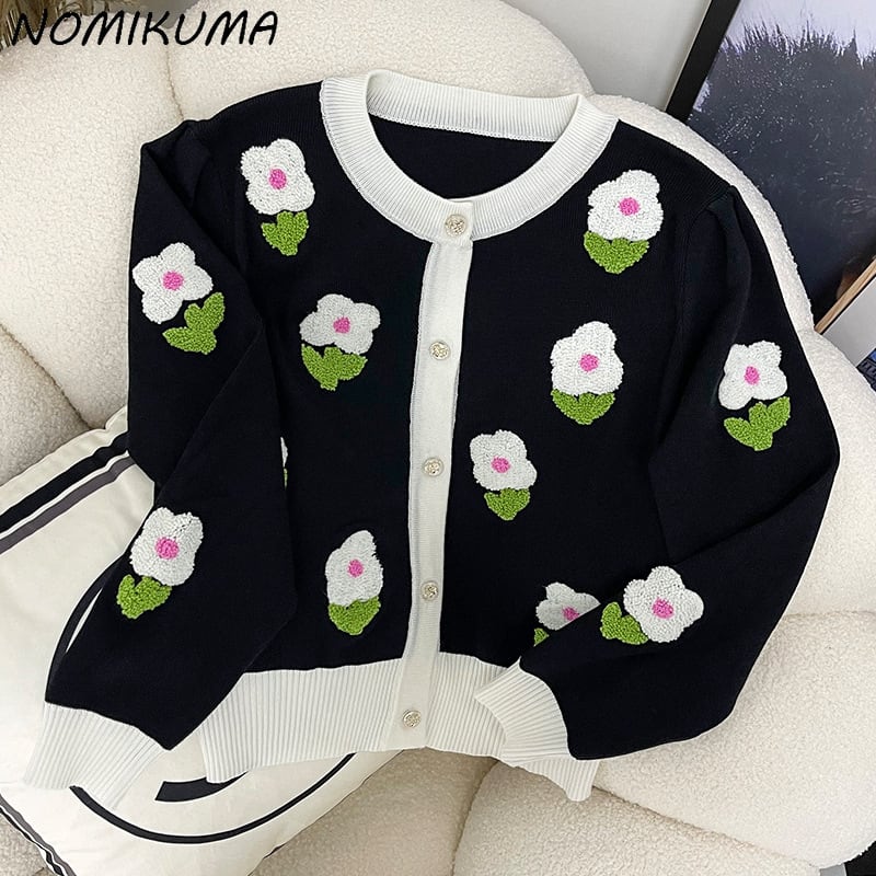 ノミクマ プルルース セーター トップス 2022年 秋 カーディガン コート Oネック 長袖 花柄 ニット セーター ロング kor40954634969