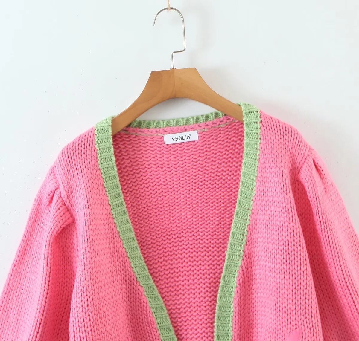 Nomikuma ロングランタンスリーブ Cardiagn コート女性 2022 秋の漫画ジャカードセーター V ネックショートオープンステッチ オータム 秋物 Vネック kor54642983220
