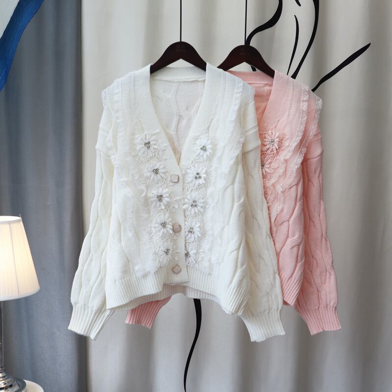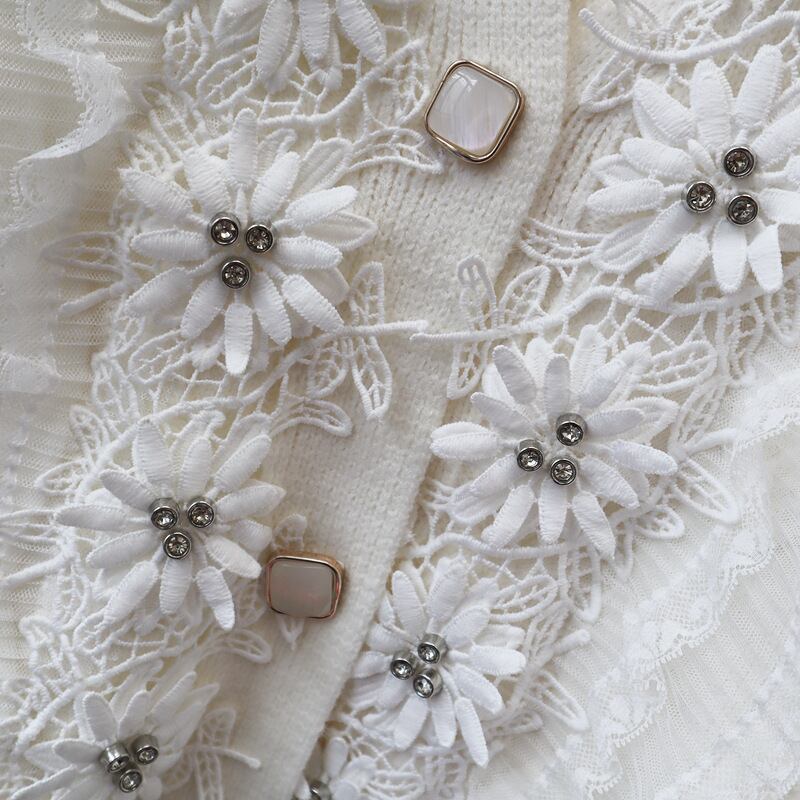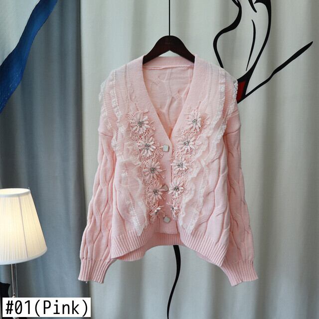 Nomikuma 花パッチワーク メッシュ ニット カーディガン女性 2022 秋冬因果甘いセーター コート ニット 大人ガーリー スウィート キュート カジュアル オータム 秋物 ウィンター 冬物 フラワーデザイン kor8370282857
