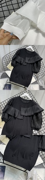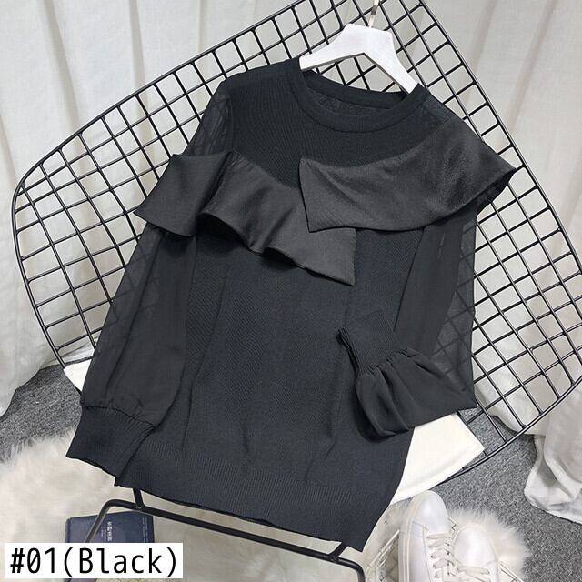 Nomikuma 不規則なフリルパッチワークニットトップス女性長袖 O ネックニットセーター 2022 秋冬 Pul ジャンパー ロング オータム 秋物 ウィンター 冬物 Oネック kor41197590698