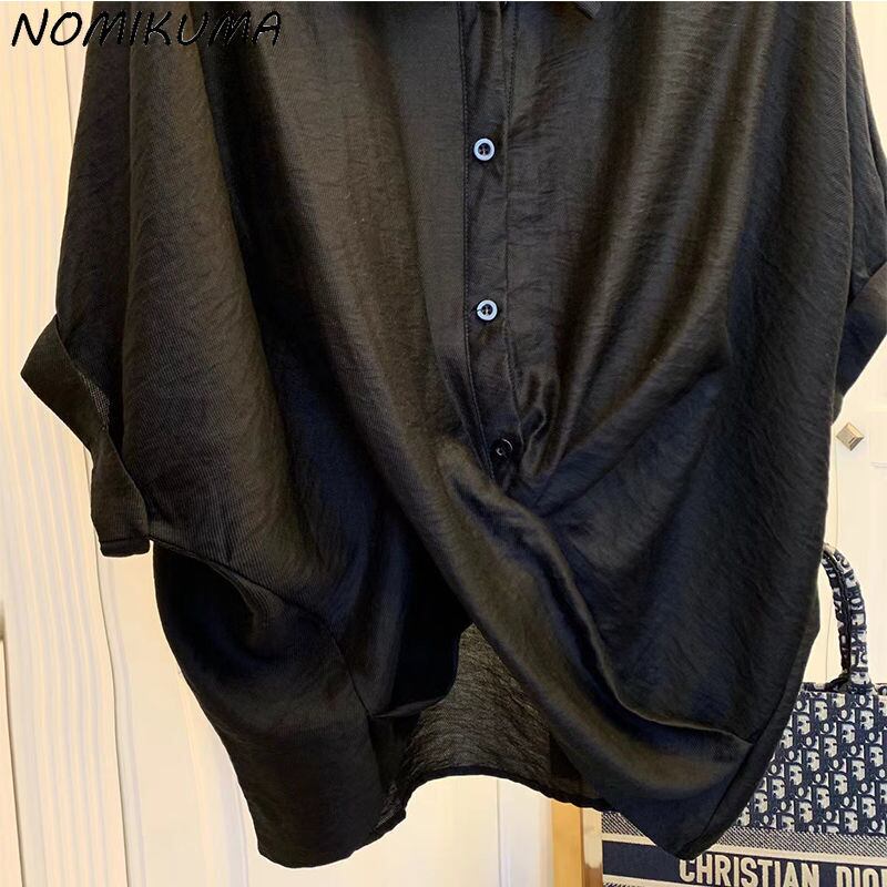 Nomikuma 不規則なブラウス女性 2022 夏因果トップシャツ半袖ターンダウン襟デ ショート ハーフスリーブ サマー 夏物 kor36117399007