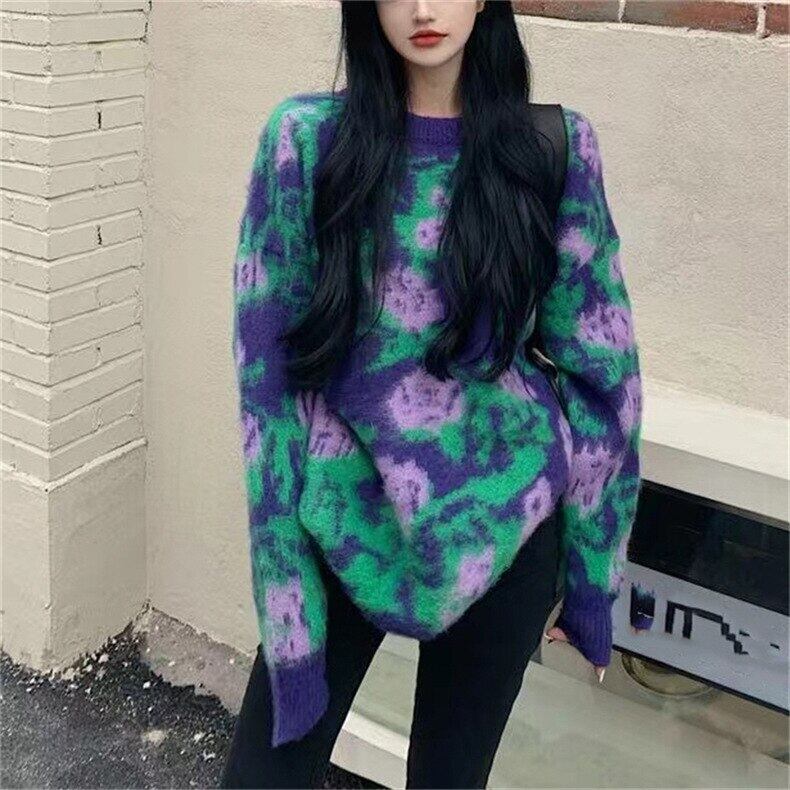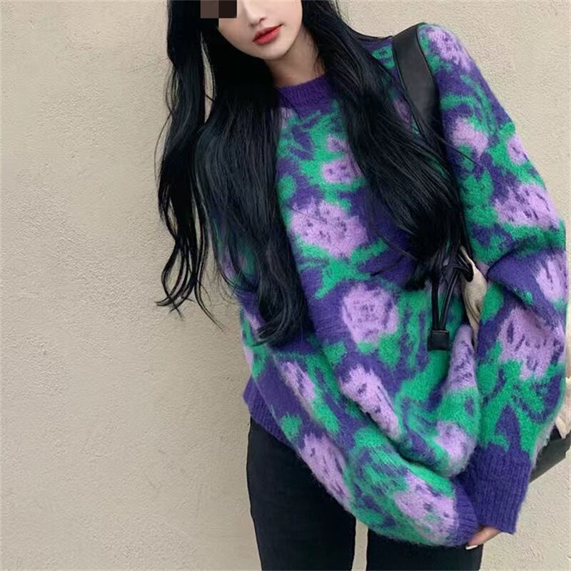 ノミクマ 長袖セーター 2022秋冬 プルフラワーニット カジュアル Oネック ニット プルオーバー ロング オータム 秋物 ウィンター 冬物 フラワーデザイン kor88908131846