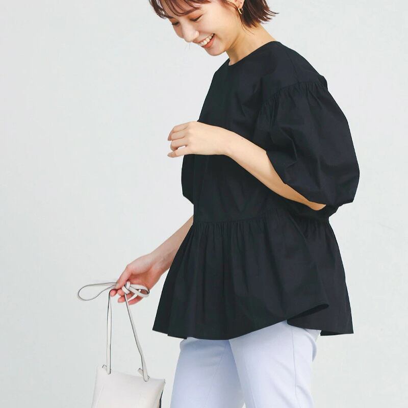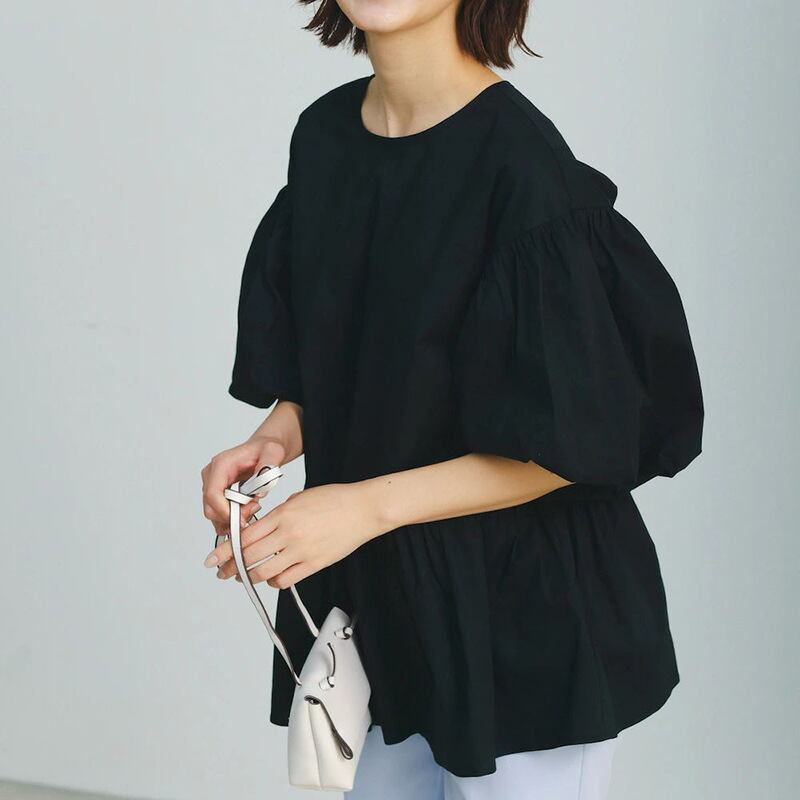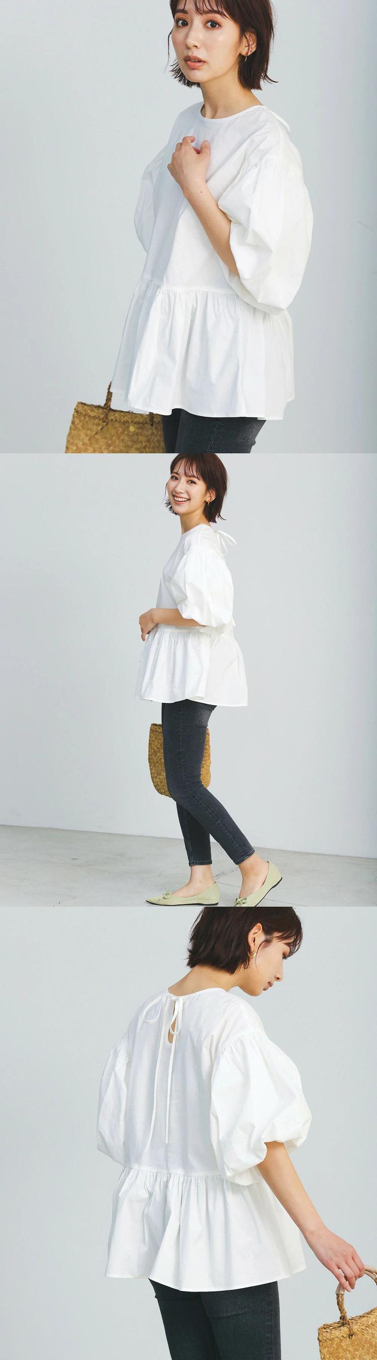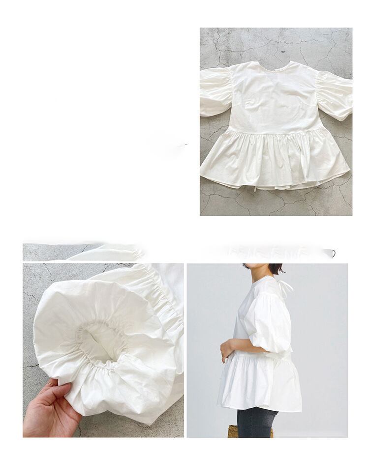 Nomikuma 2022 夏の女性スタイル人形シャツシックな甘いパフスリーブ O ネックブラウス因果ウエストフリルトップ 大人ガーリー スウィート キュート カジュアル サマー 夏物 Oネック kor92092624940