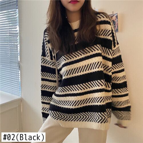 Nomikuma ヒットカラーストライププルオーバーセーター女性秋冬 2022 ニット因果長袖 O ネックプル ロング オータム 秋物 ウィンター 冬物 Oネック kor20978616457