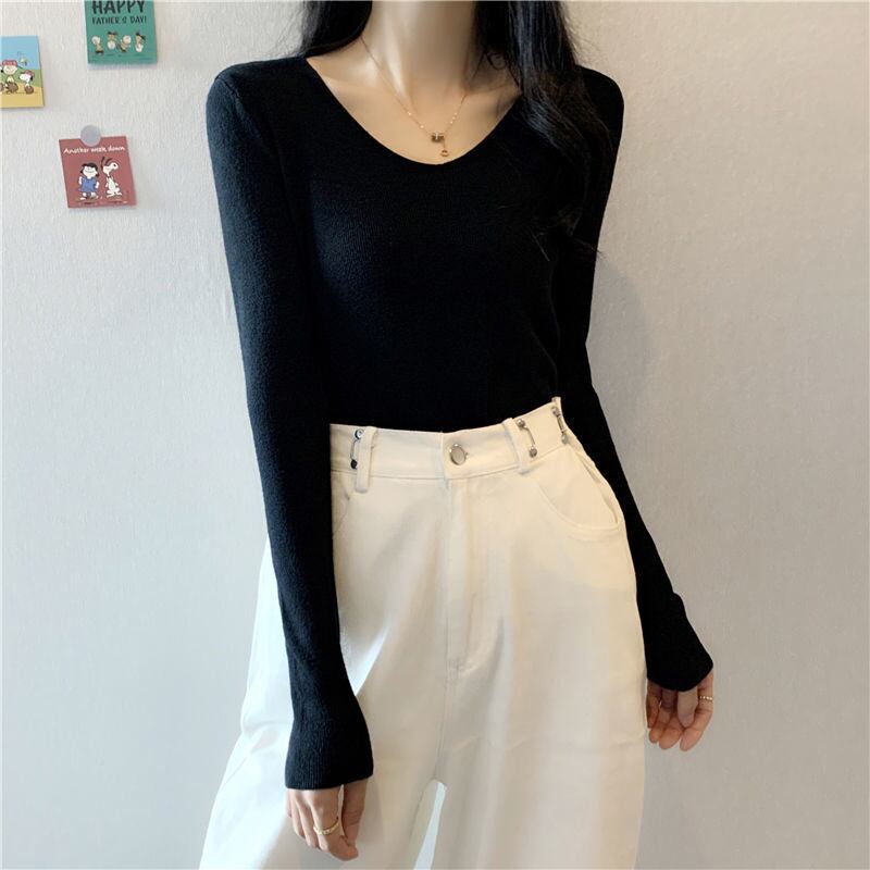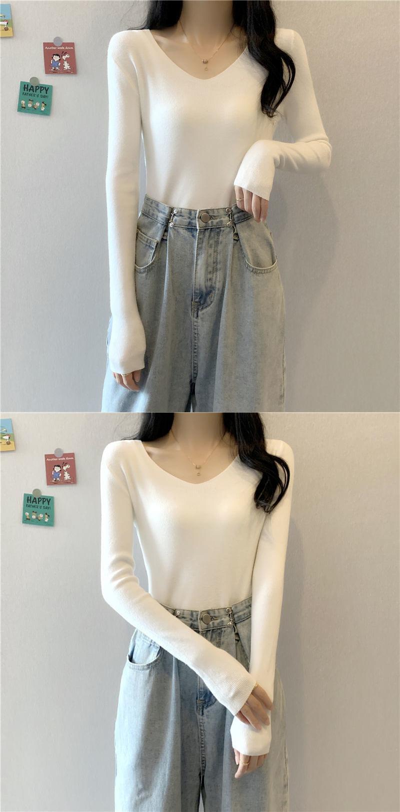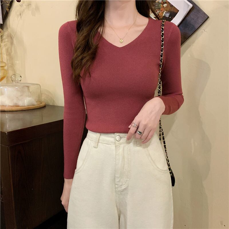 Nomikuma 2022 Autyumn 冬プルオーバーニットベーシックトップス長袖 V ネックストレッチスリム女性セーターソリッドニット ロング ウィンター 冬物 Vネック ソリッドカラー kor55200520670