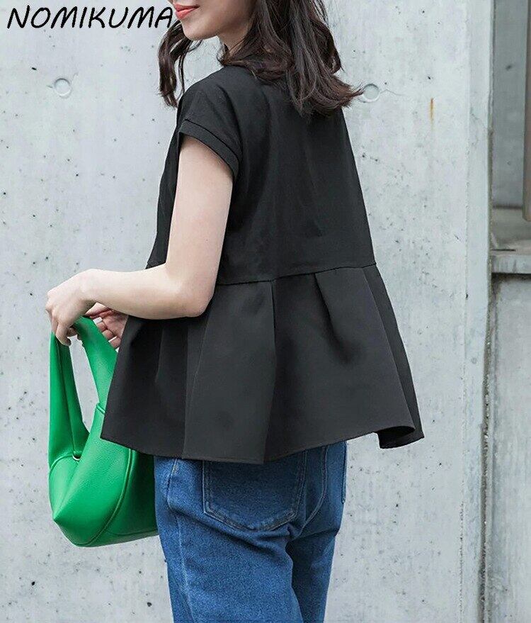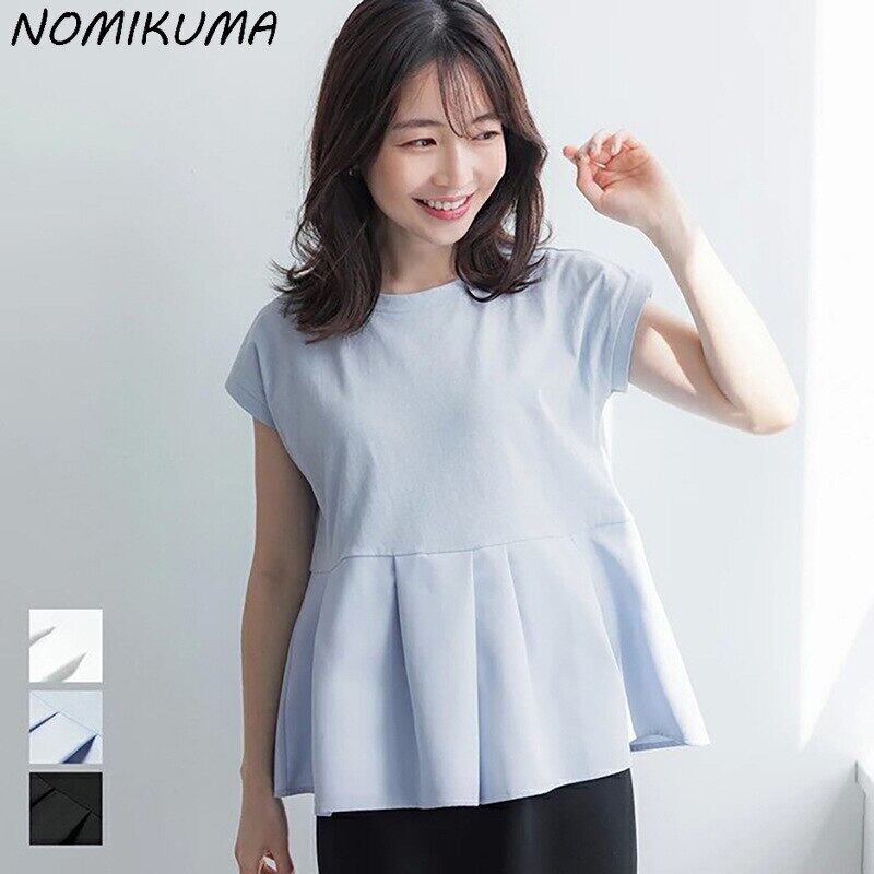 Nomikuma スウィートウーマンドールシャツ 2022 夏半袖 O ネックシックなトップス因果フリルパッチワークプルオーバー ショート ハーフスリーブ 大人ガーリー キュート カジュアル サマー 夏物 Oネック kor28608664982
