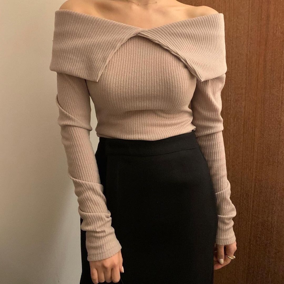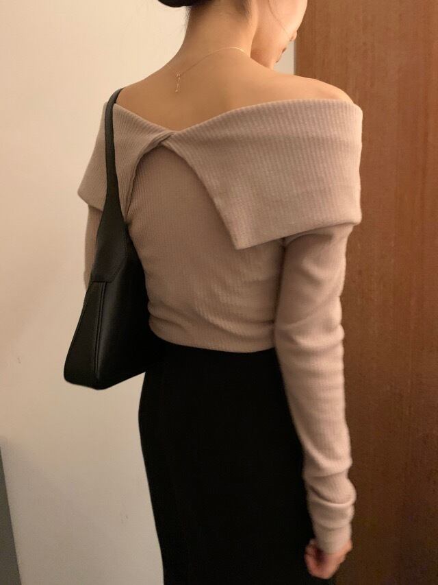 Nomikuma セクシーなストラップレスターンダウン襟ニットトップス女性長袖スリムベーシックセーター女性秋冬ニット ロング オータム 秋物 ウィンター 冬物 kor34847770558
