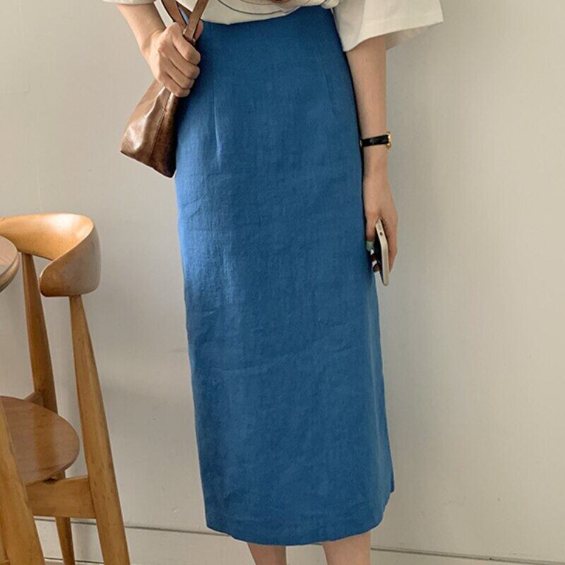 Nomikuma 無地スプリットコットンリネン女性スカート 2021 夏ウエストスカート段 Faldas デ 6H970 サマー 夏物 ソリッドカラー kor96028158324