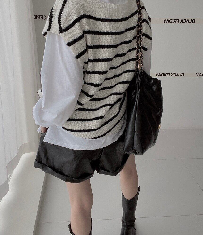 Nomikuma 因果 V ネックプルオーバーニットストライプベスト手紙アップリケセーター女性 2022 秋冬ニットウェアベスト オータム 秋物 ウィンター 冬物 Vネック kor81506025601