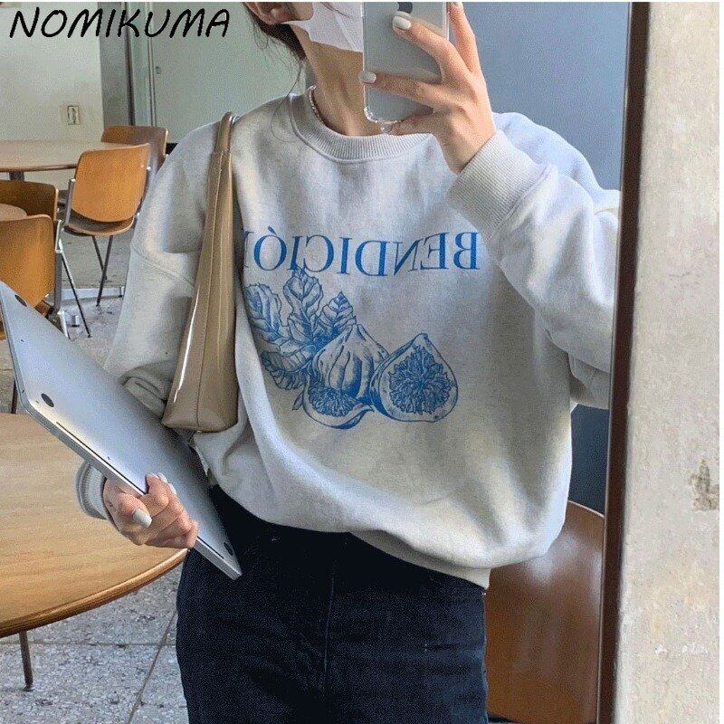 Nomikuma 因果フリース印刷長袖トレーナー女性秋冬プルオーバーパーカートップジャンパー 2022 ロング オータム 秋物 ウィンター 冬物 kor1771731745