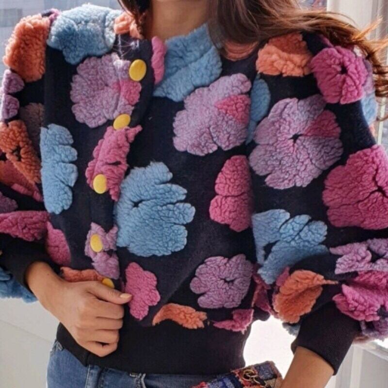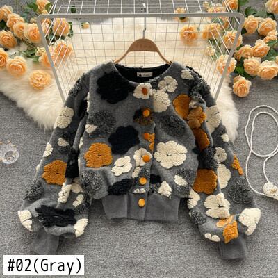 ノミクマシックな立体花カーディガンショートコート秋冬 O ネックパフスリーブジャケット 2021 生き抜く 6V770 オータム 秋物 ウィンター 冬物 Oネック フラワーデザイン kor7505993836