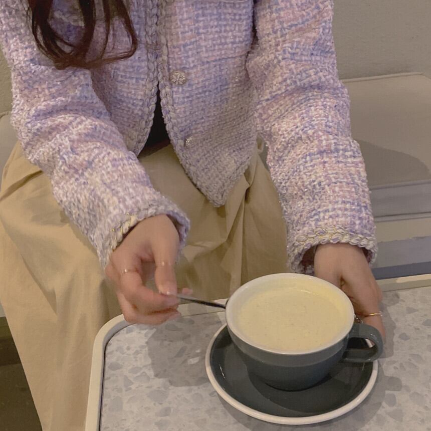 Nomikuma シックなツイードショート女性コート長袖シングルブレスト O ネック生き抜くトップス 2022 ジャケット ロング Oネック kor18547680906