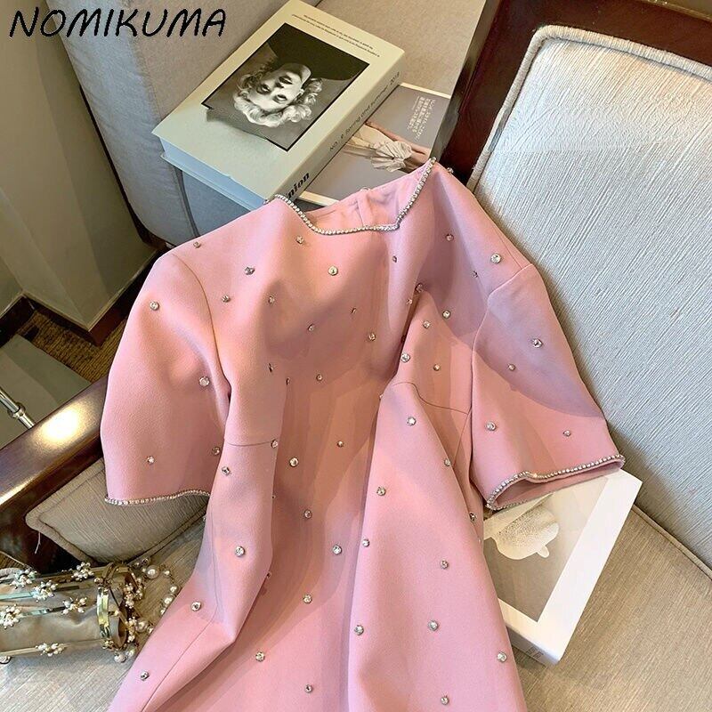 Nomikuma シックなダイヤモンドサマードレス女性 2022 半袖 O ネックドレススリムウエスト A ラインミニ Vestidos ショート ハーフスリーブ 夏物 Oネック Aライン kor10259217132