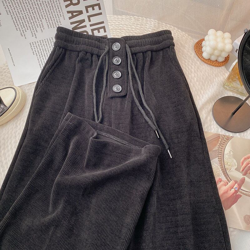 Nomikuma 女性のズボン 2022 秋冬ロングパンツ因果巾着弾性ウエストワイドレッグパンツ エラスティック 伸縮 オータム 秋物 ウィンター 冬物 ワイドパンツ kor66553494092