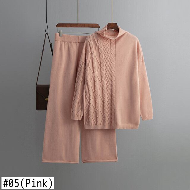 Nomikuma秋冬セーター2ピースレディース衣装長袖タートルネックツイストニットトップス+ウエストワイドレッグパンツ ロング オータム 秋物 ウィンター 冬物 ワイドパンツ kor92868557801