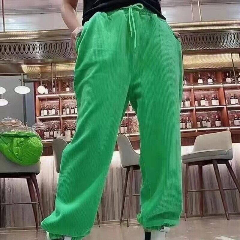 Nomikuma 2022 秋レースアップ弾性ウエストコーデュロイスウェットパンツ因果無地パンツ女性長ズボン ロング エラスティック 伸縮 オータム 秋物 ソリッドカラー kor40321636933
