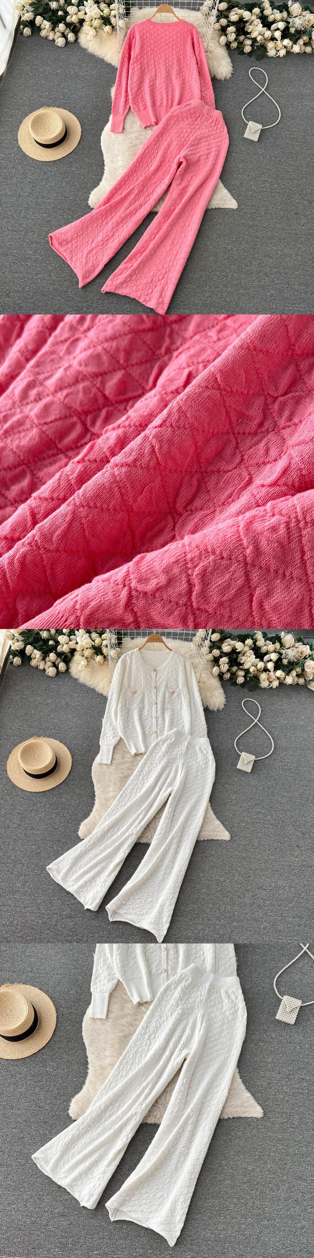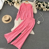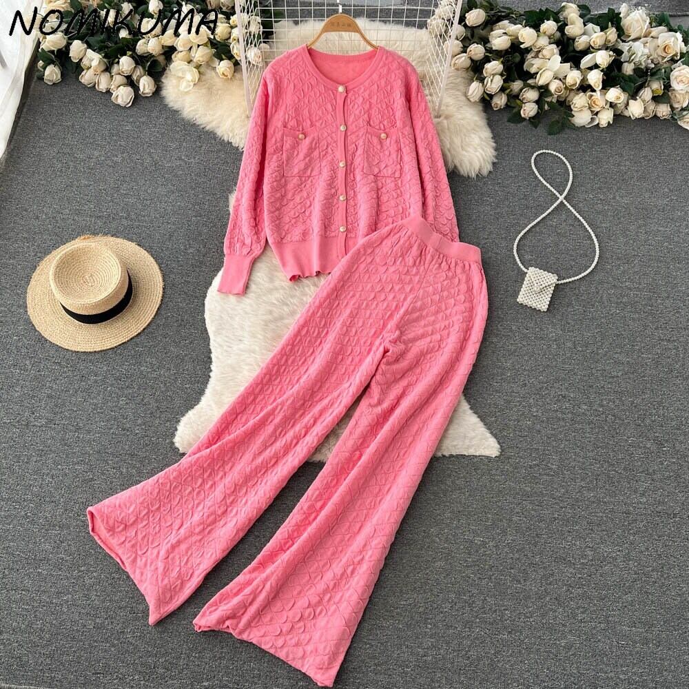 Nomikuma 秋冬セーターセット女性長袖 V ネックニットカーディガン + ウエストワイド脚長ズボン二枚 2022 ロング オータム 秋物 ウィンター 冬物 Vネック ワイドレッグ ワイドパンツ kor48525619597