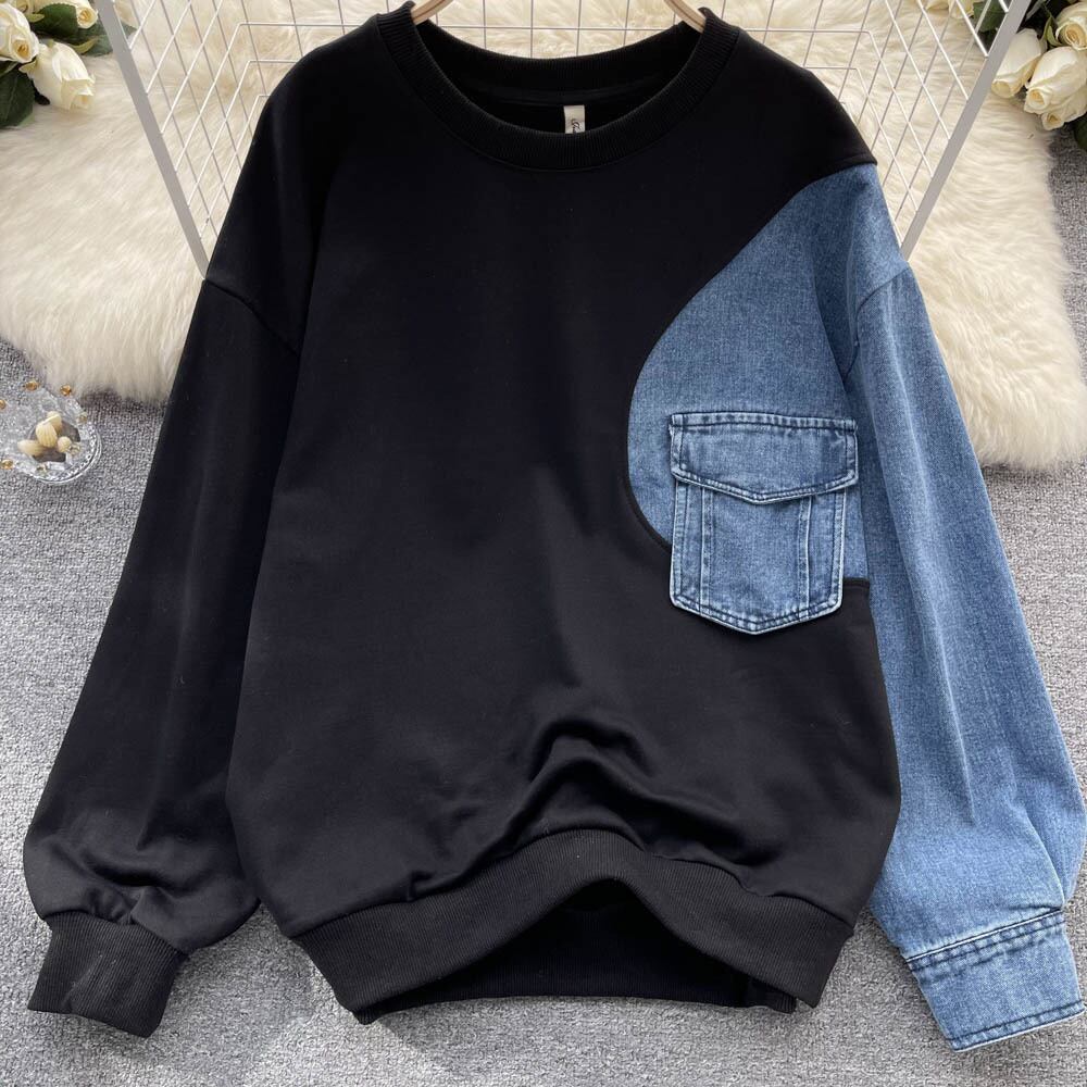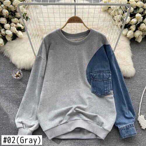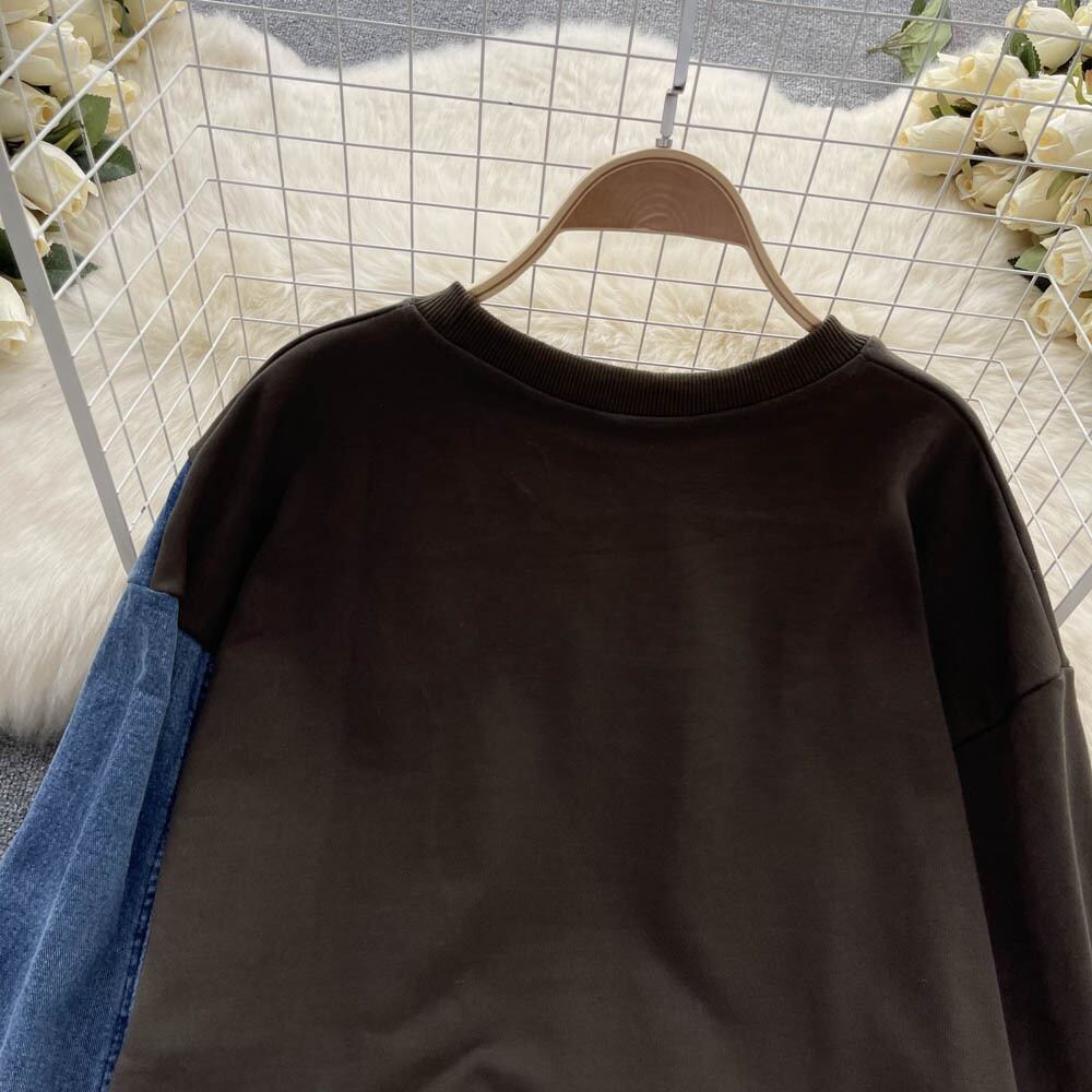 Nomikuma 2022 秋冬ジャンパー Demin パッチワークスウェットシャツ女性因果長袖 O ネックプルオーバーパーカートップ ロング オータム 秋物 ウィンター 冬物 Oネック kor67017583264