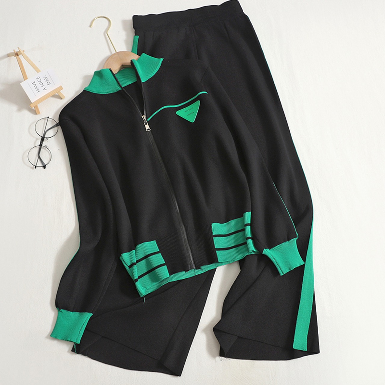 Nomikuma 因果汗セット女性 2022 秋スタンドネックジッパー長袖ニット + ウエストワイドレッグロングパンツ オータム 秋物 ワイドパンツ kor31615252715
