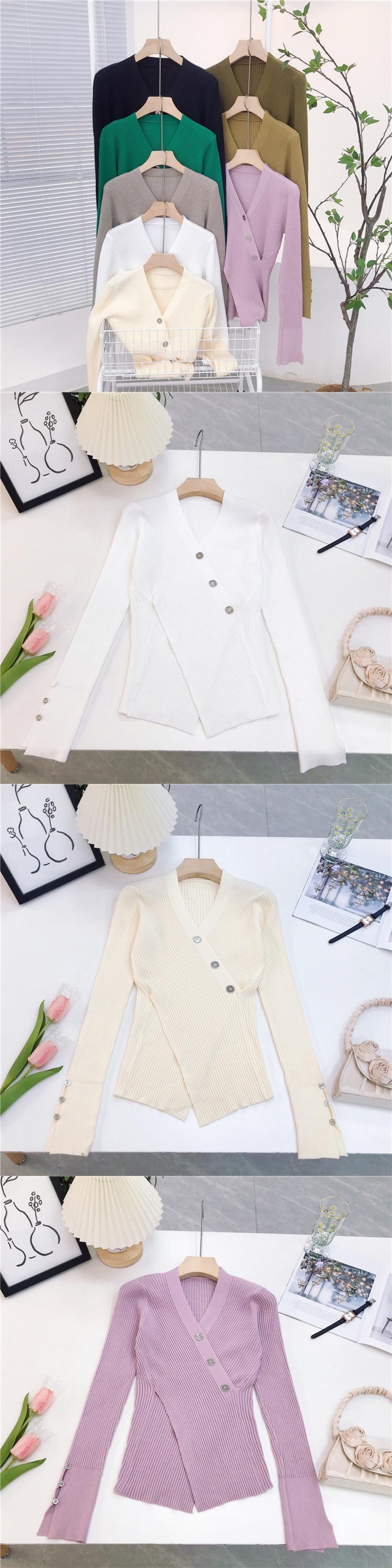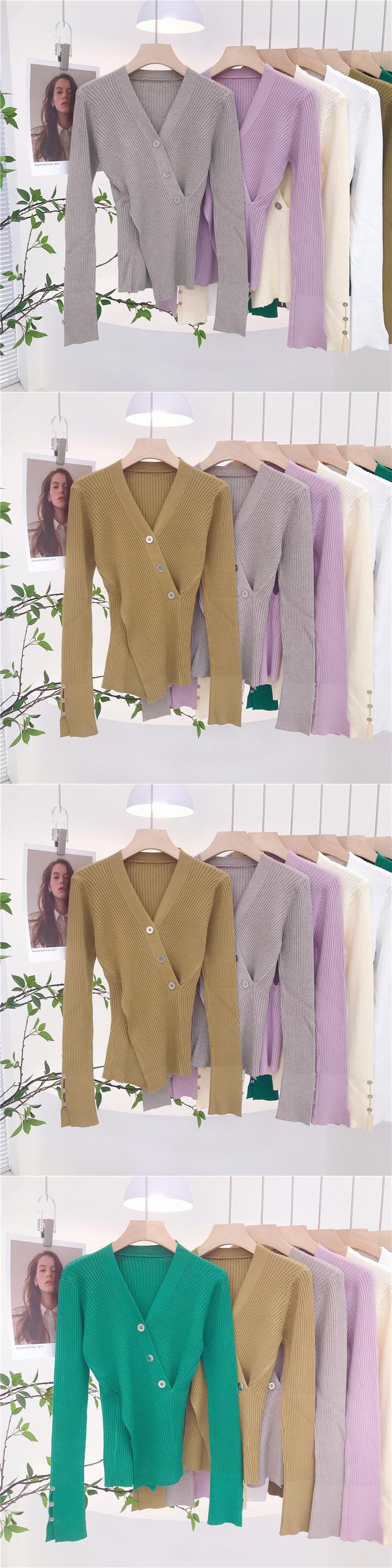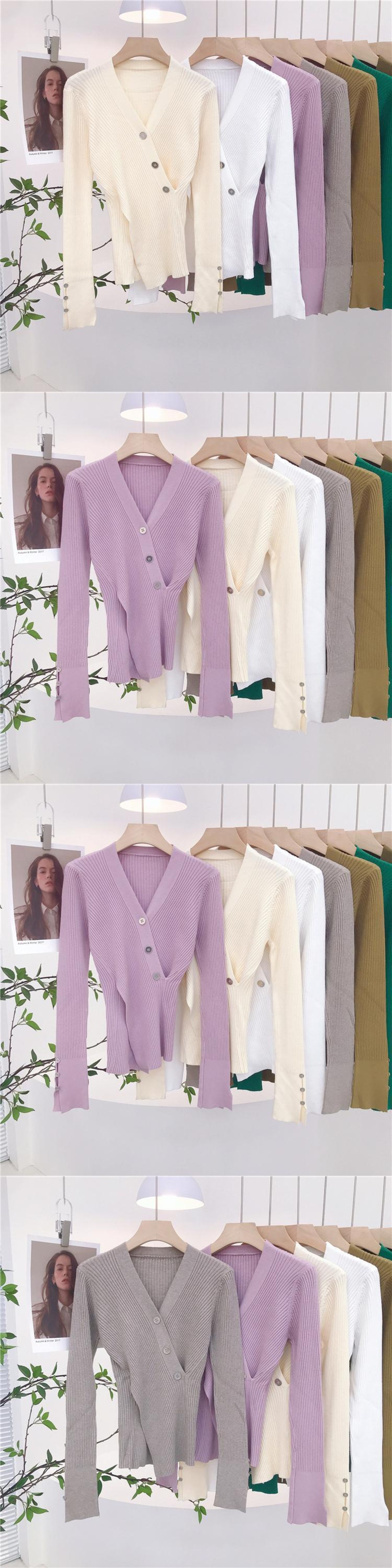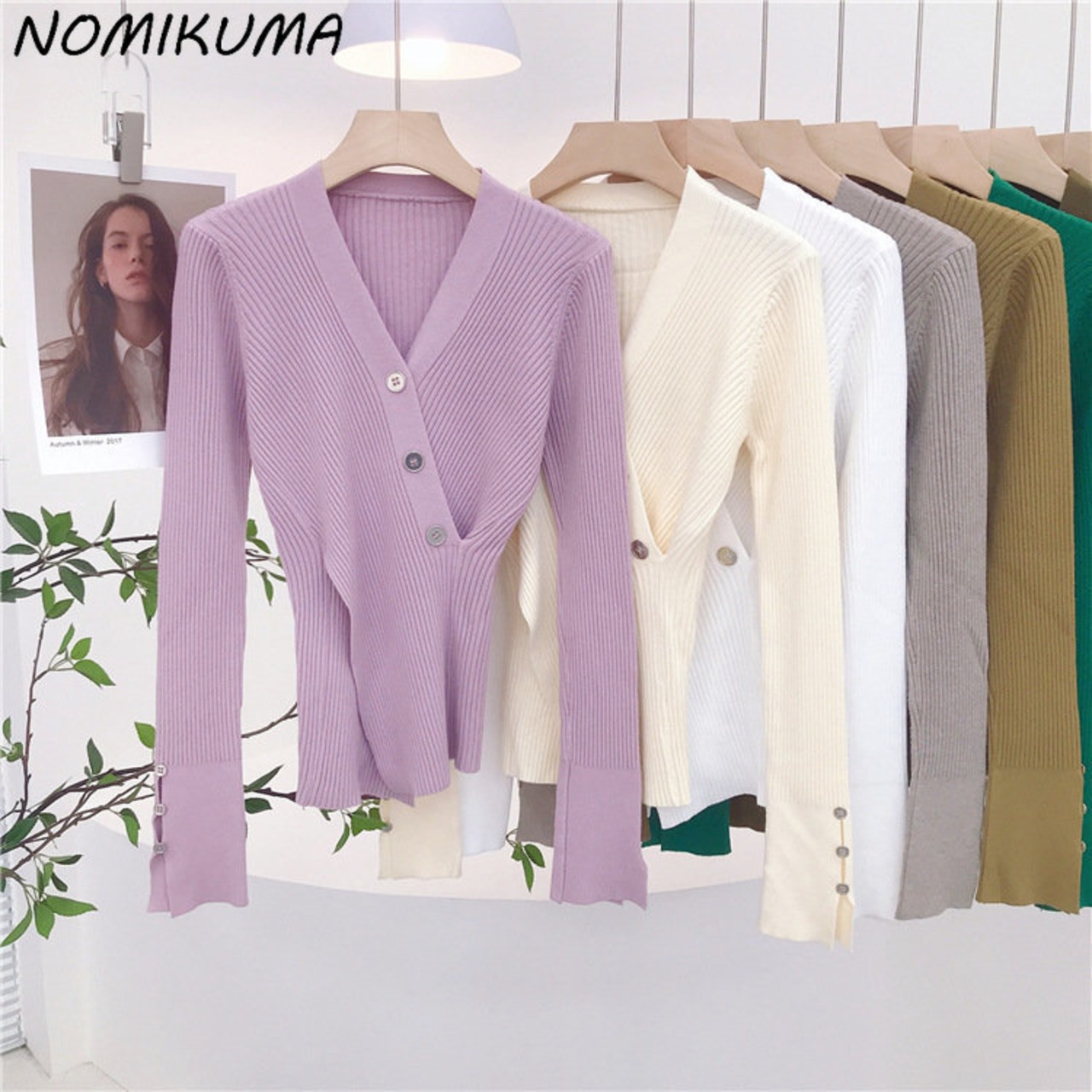 Nomikuma 2022 秋ボタン V ネッククロス不規則なスプリットニットトップス女性スリムストレッチセータープルオーバー オータム 秋物 Vネック kor63924683351