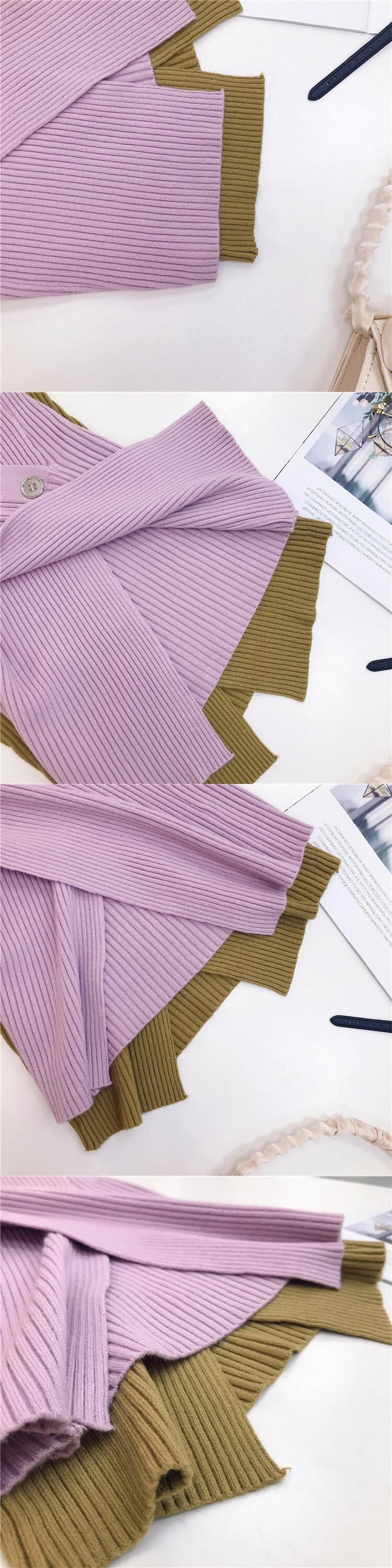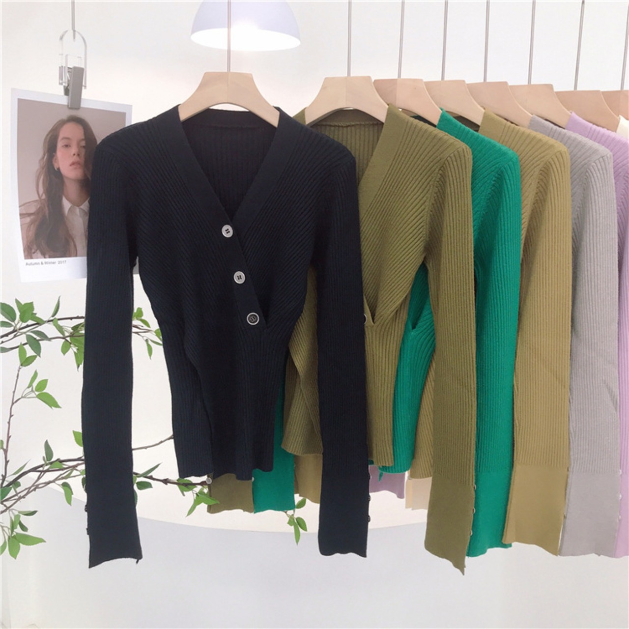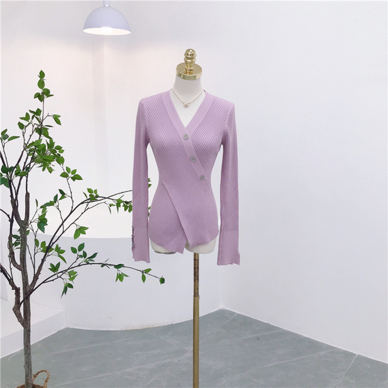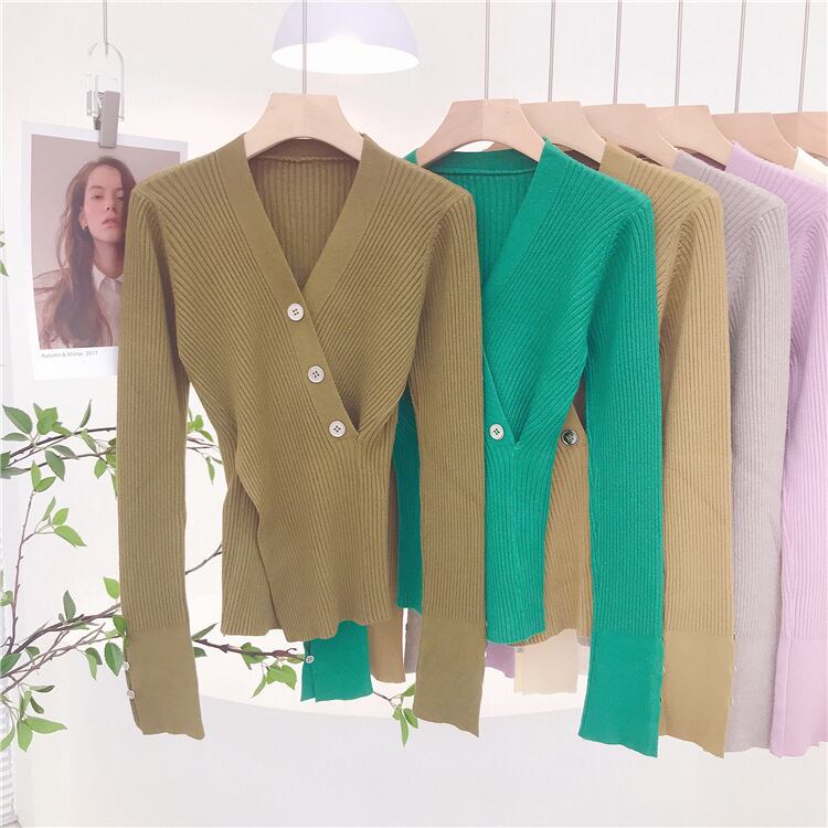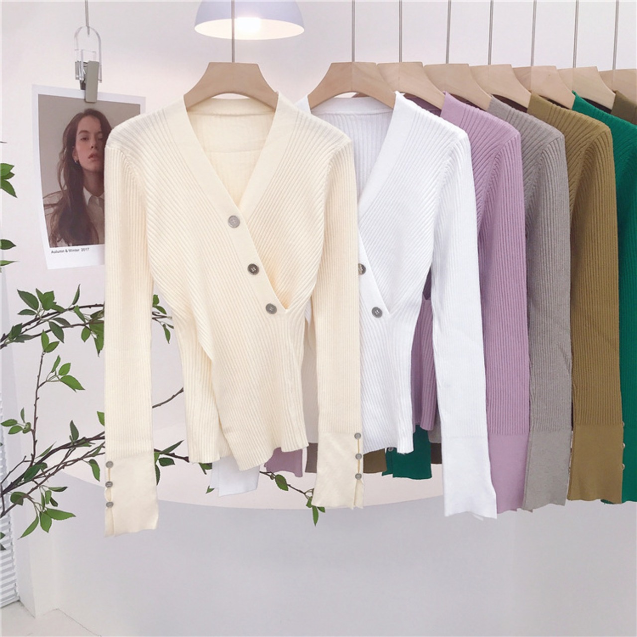 Nomikuma 2022 秋ボタン V ネッククロス不規則なスプリットニットトップス女性スリムストレッチセータープルオーバー オータム 秋物 Vネック kor63924683351