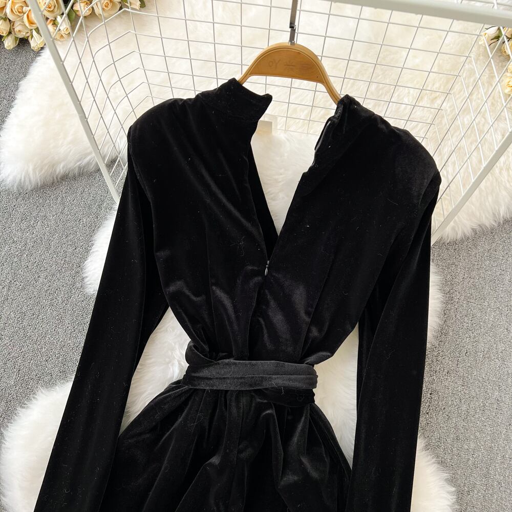 Nomikuma 弓包帯スリムウエスト Velet ジャンプスーツ女性秋冬長袖 V ネックワイド脚ロンパース ロング リボン オータム 秋物 ウィンター 冬物 Vネック ワイドレッグ ワイドパンツ kor46440755417