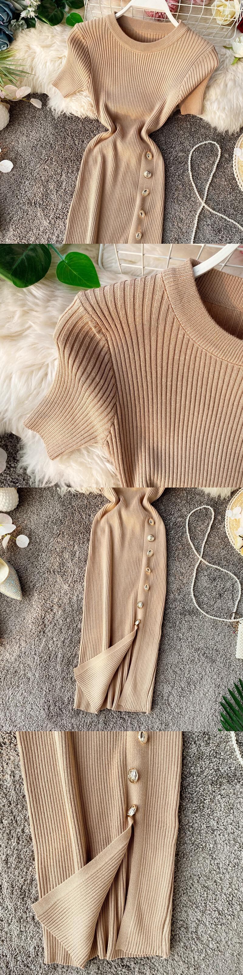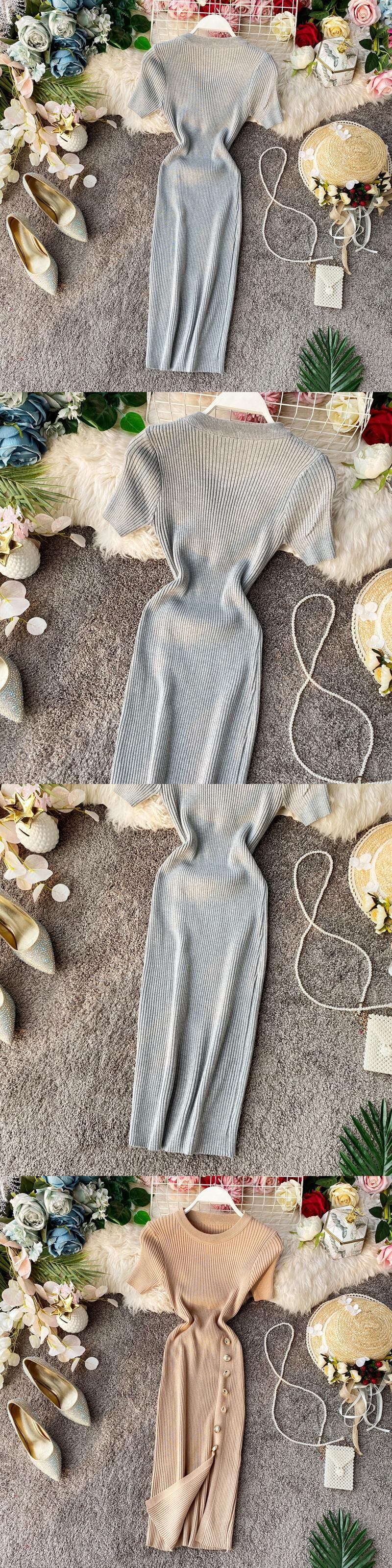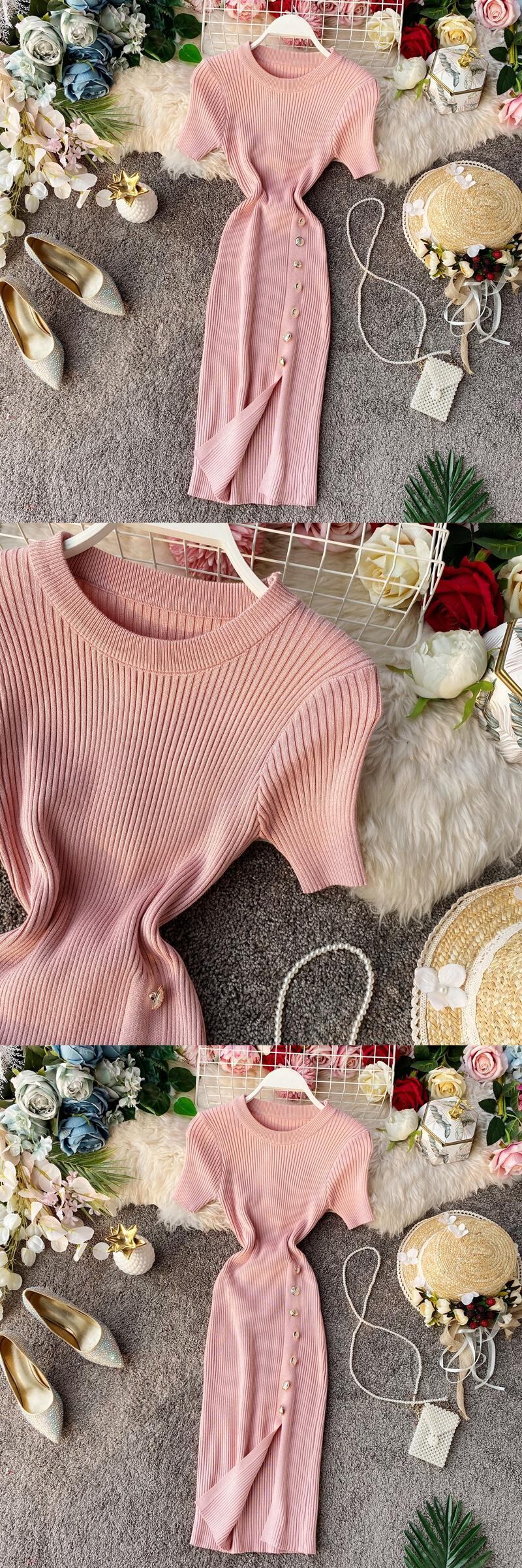 Nomikuma 女性 2022 スリムボディコンニットスプリット裾シックな Vestido Feminino サマードレスセータードレス 夏物 kor93519623225