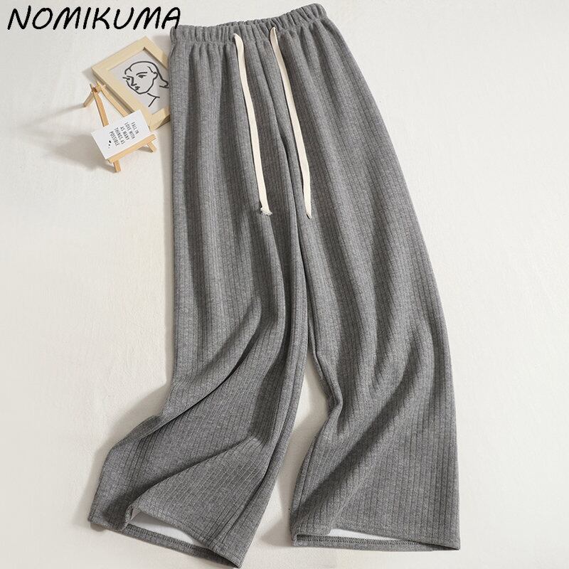 Nomikuma ワイドレッグパンツ女性 2022 秋冬フリース長ズボン因果レースアップウエストパンツ Pantalones ロング オータム 秋物 ウィンター 冬物 ワイドパンツ kor21691122069