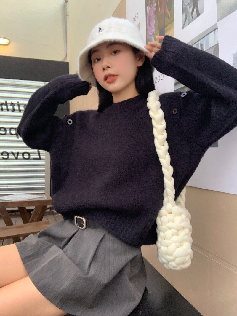 Nomikuma 因果ストラップレス長袖プルオーバーニットセーター女性秋冬 2022 無地ニットトップス ロング オータム 秋物 ウィンター 冬物 ソリッドカラー kor86292246930