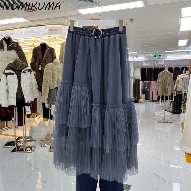 Nomikuma 不規則なパッチワーク メッシュ スカート レディース 2022 秋冬プリーツ スカート ウエスト因果 A ライン ボトムス オータム 秋物 ウィンター 冬物 Aライン kor74719637881