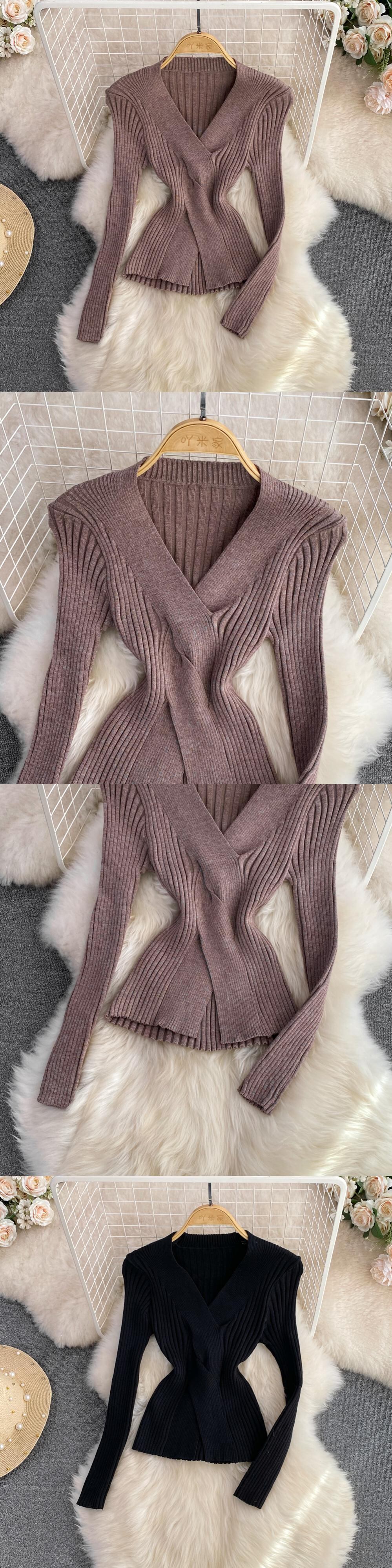 Nomikuma クロス V ネックニット底入れトップス女性秋冬スリムストレッチニット 2022 長袖セーター ロング オータム 秋物 ウィンター 冬物 Vネック kor9161365261
