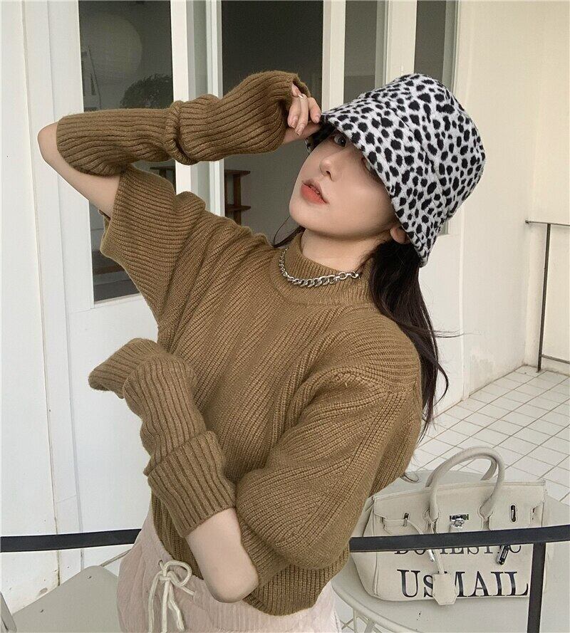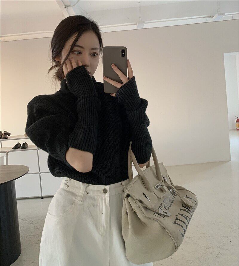 Nomikuma ニットパフスリーブプルオーバートップス因果無地女性セーター 2022 秋冬ハーフカラーニット オータム 秋物 ウィンター 冬物 ソリッドカラー kor38343057134