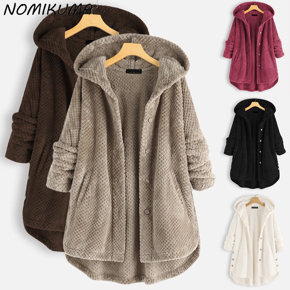 Nomikuma 女性の冬のフード付きミディアムロングスウェットシャツカーディガンコート 2022 シングルブレスト長袖因果パーカートップ ウィンター 冬物 kor18888437017
