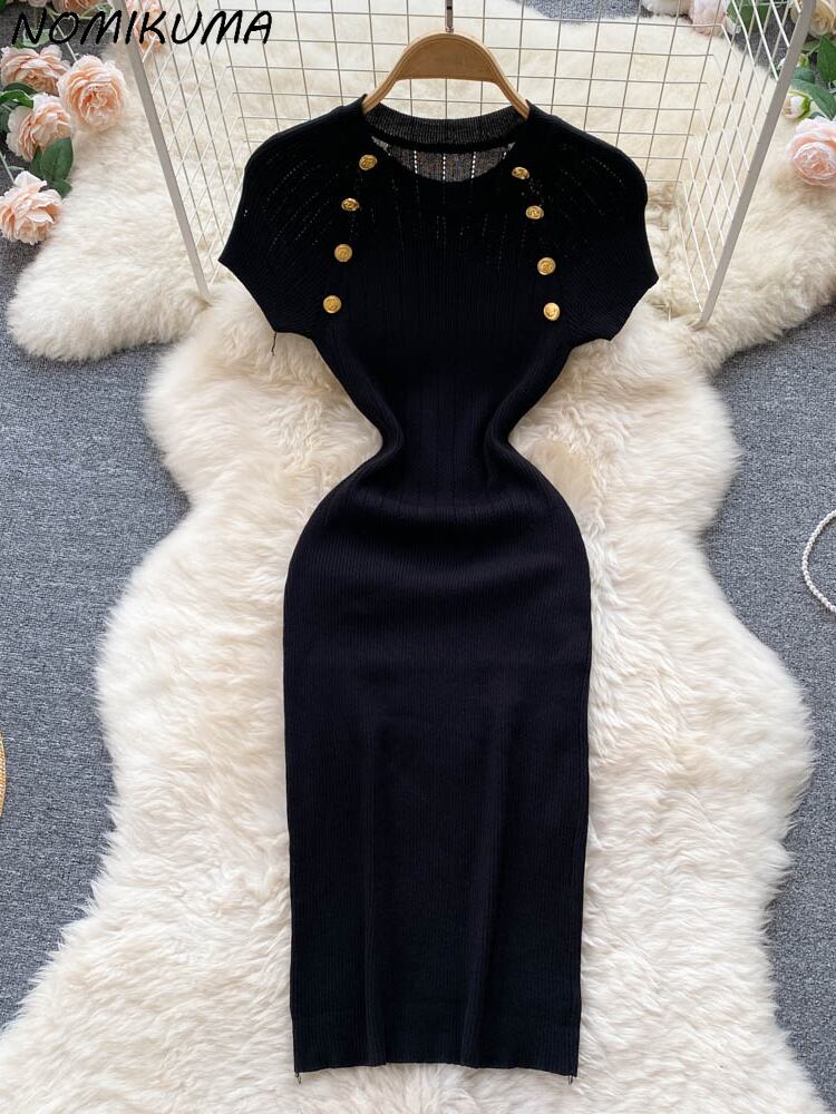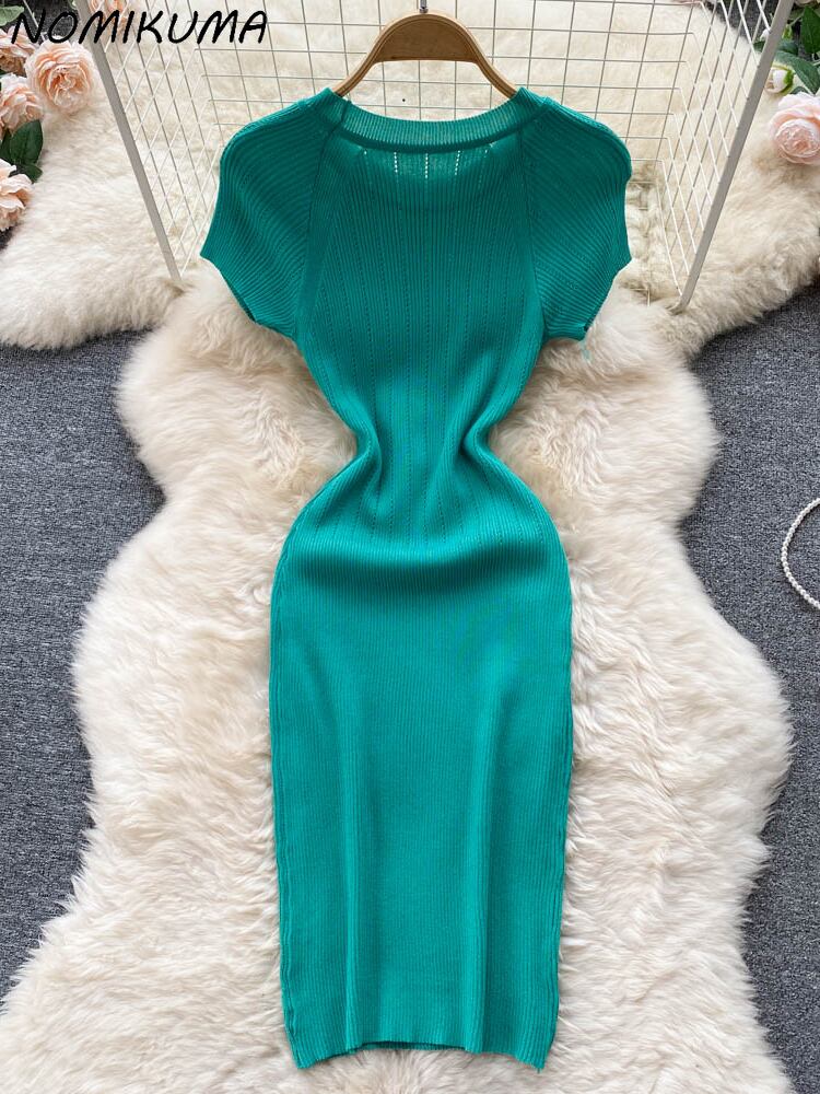 Nomikuma セーター Vestidos デ Verano 2022 スリムボディコンニット無地ローブロングレトロ女性ドレス ソリッドカラー kor11117712740