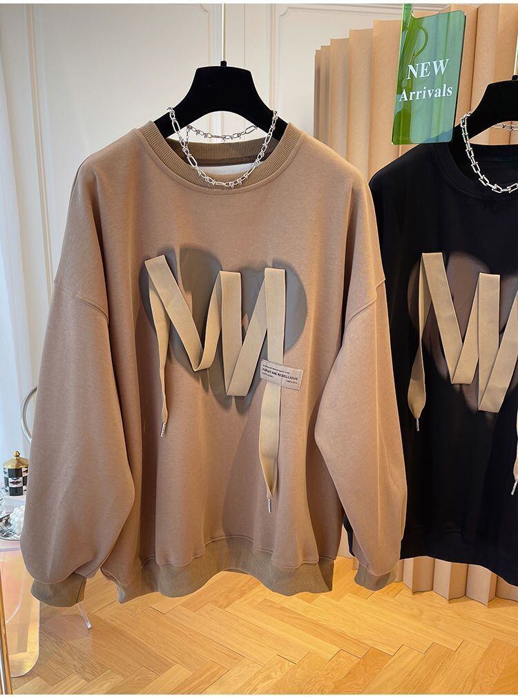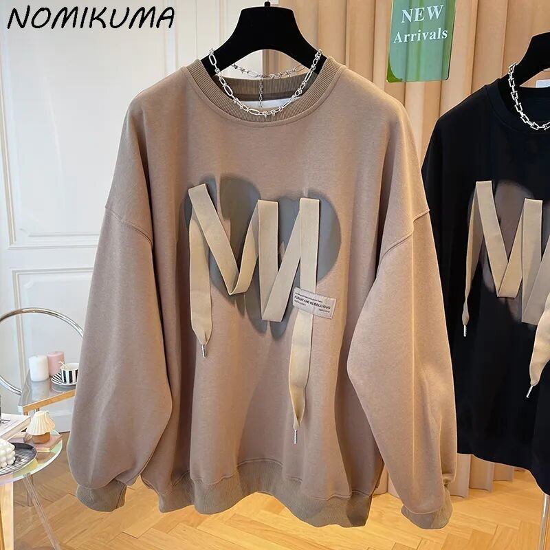 Nomikuma リボンシックな女性スウェットシャツ因果長袖 O ネックパーカートップ 2022 秋冬フリースプルオーバージャンパー ロング オータム 秋物 ウィンター 冬物 Oネック kor28443450298