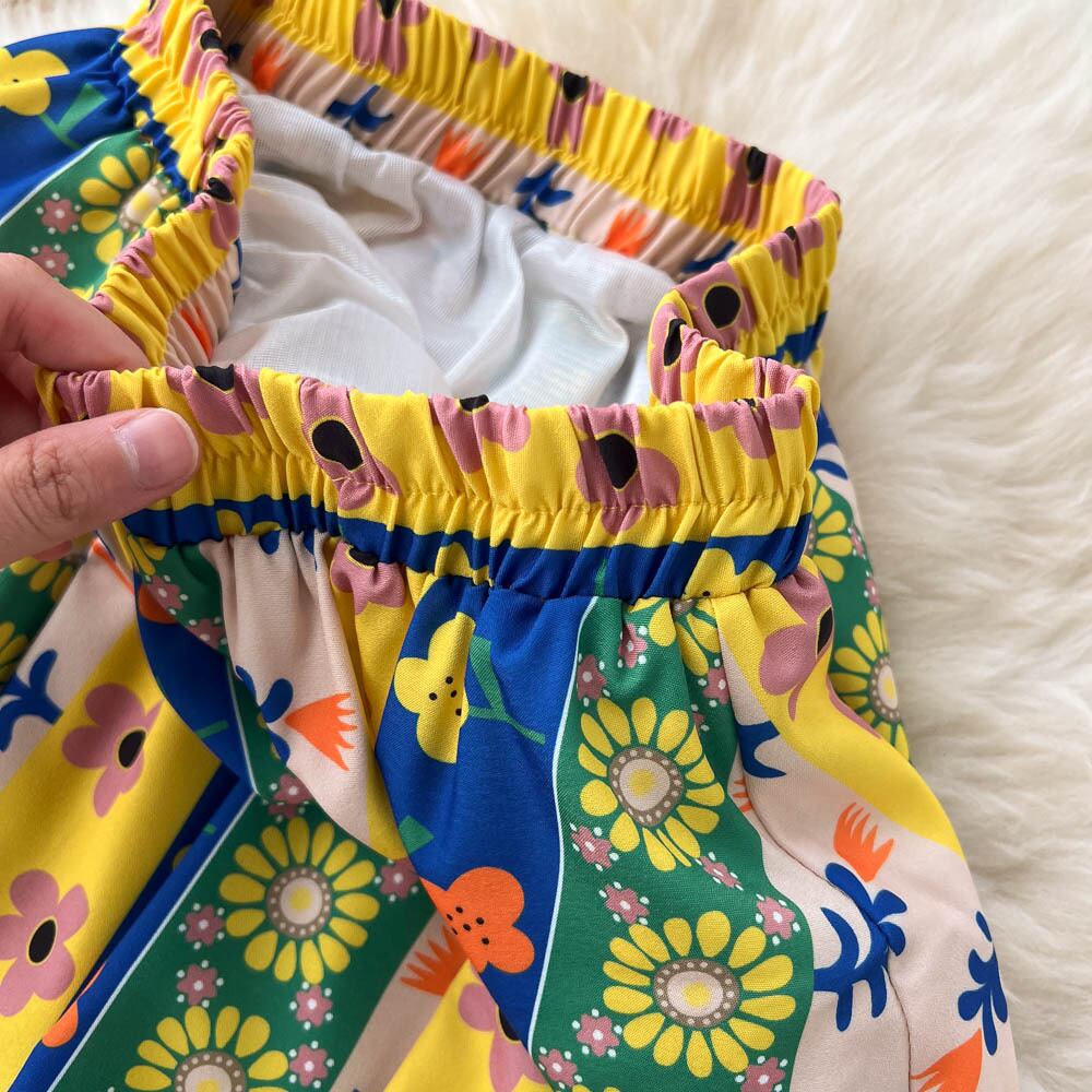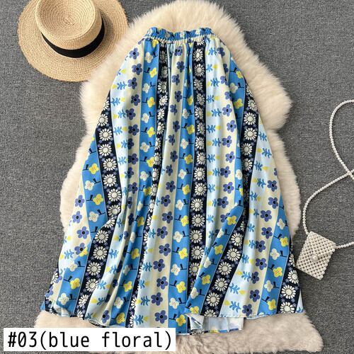 Nomikuma コントラストカラー花柄スカート女性ウエストボトムス 2022 夏因果 A ラインスカート段 Faldas サマー 夏物 Aライン kor56462988865