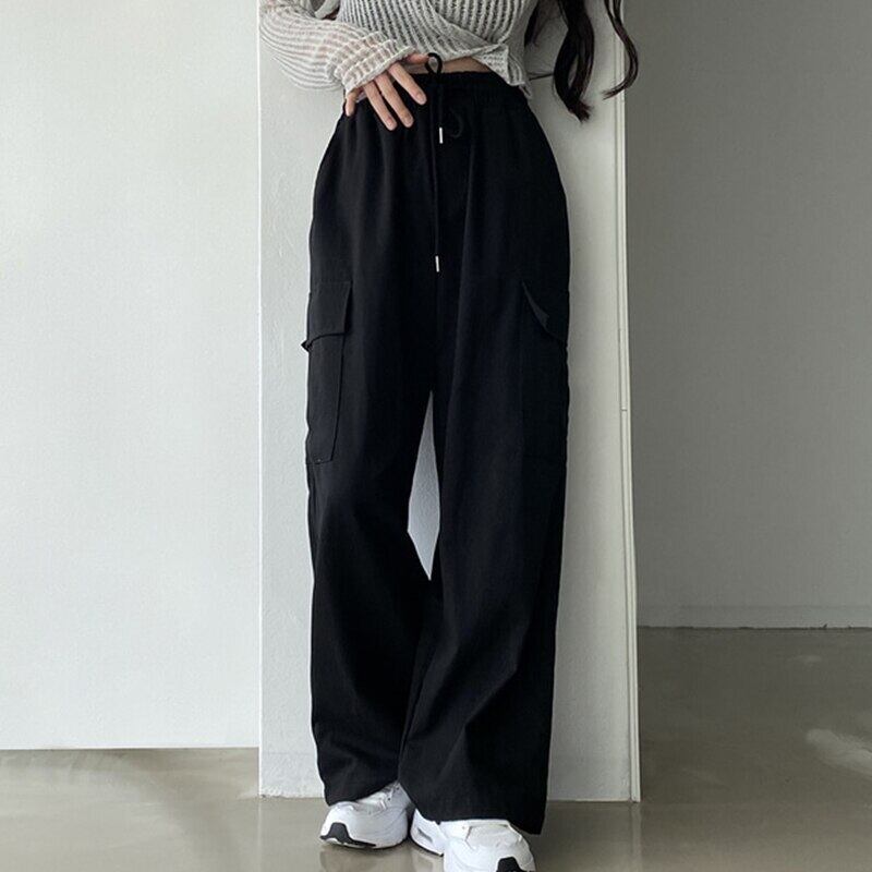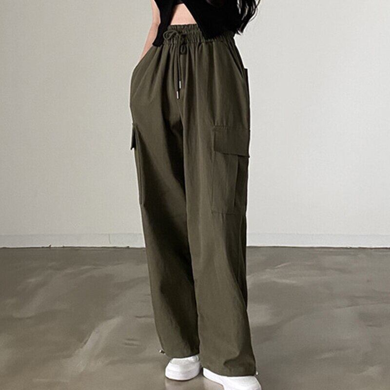 Nomikuma 女性パンツハーレム無地レースアップウエスト長ズボン 2022 秋サファリスタイルシンプルなストリートパンツ ロング オータム 秋物 ソリッドカラー kor84775426931