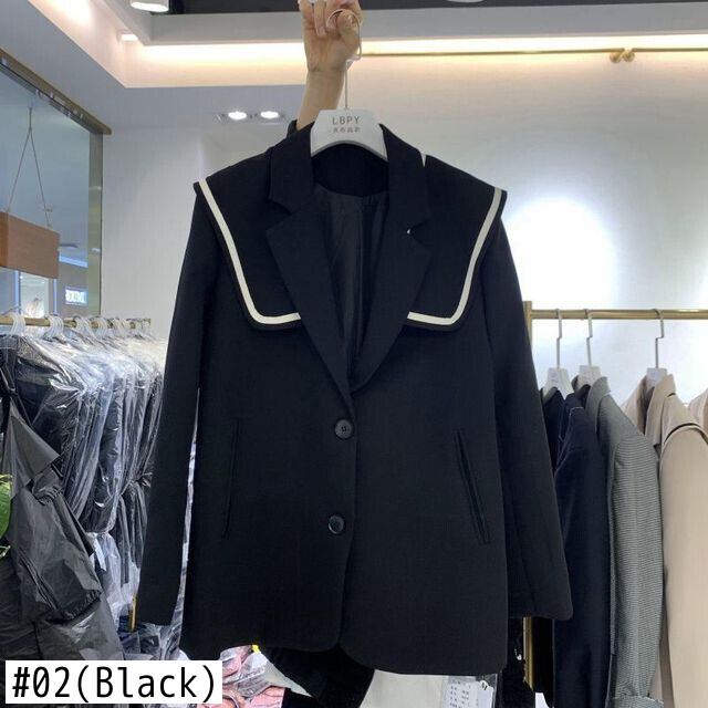Nomikuma セーラー襟因果ブレザーコート女性秋のスーツジャケット 2022 シングルブレストブレザー オータム 秋物 kor24239473815