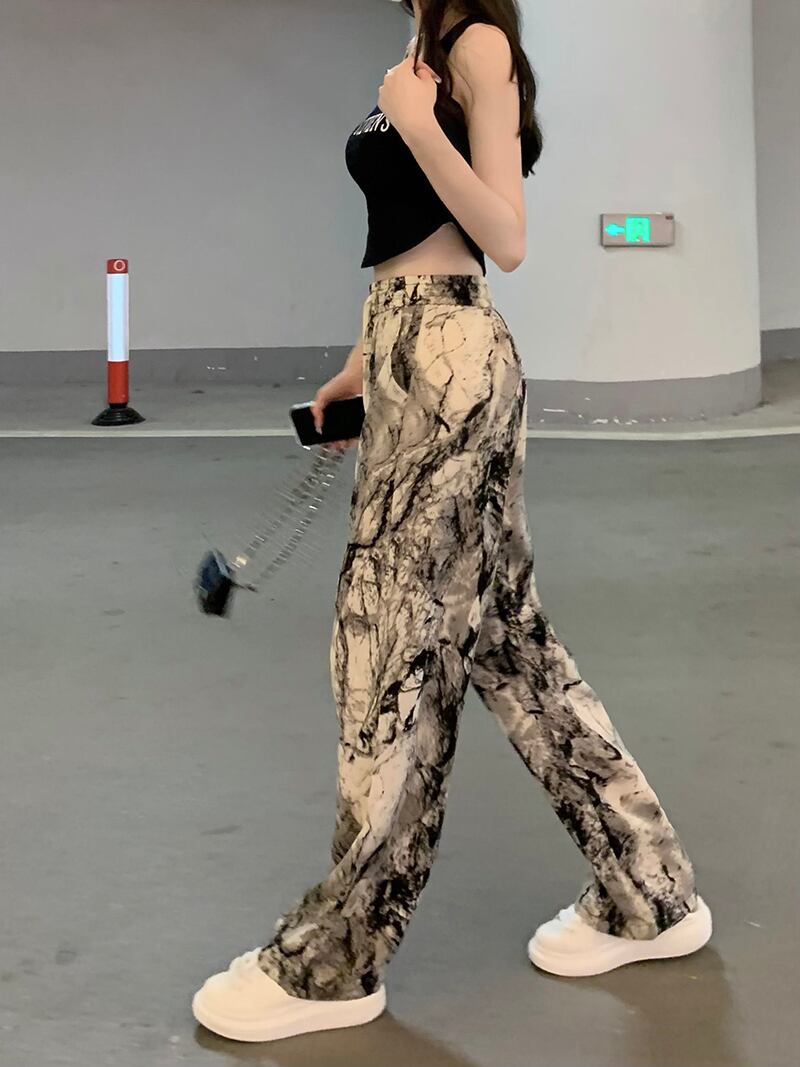 Nomikuma タイダイ女性パンツレースアップウエスト長ズボン因果 2022 夏ワイドレッグ Pantalones ロング サマー 夏物 ワイドパンツ kor59285763591