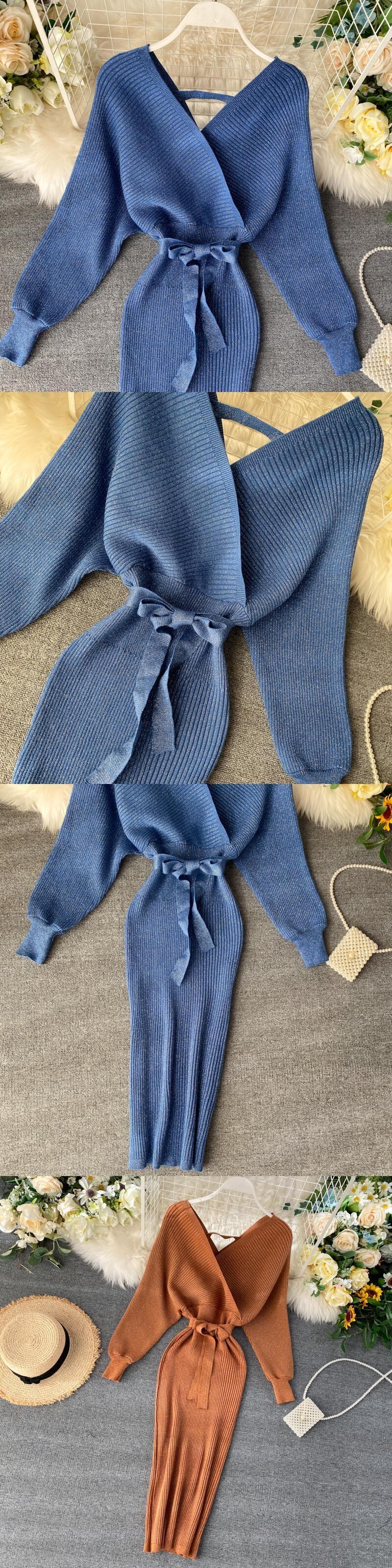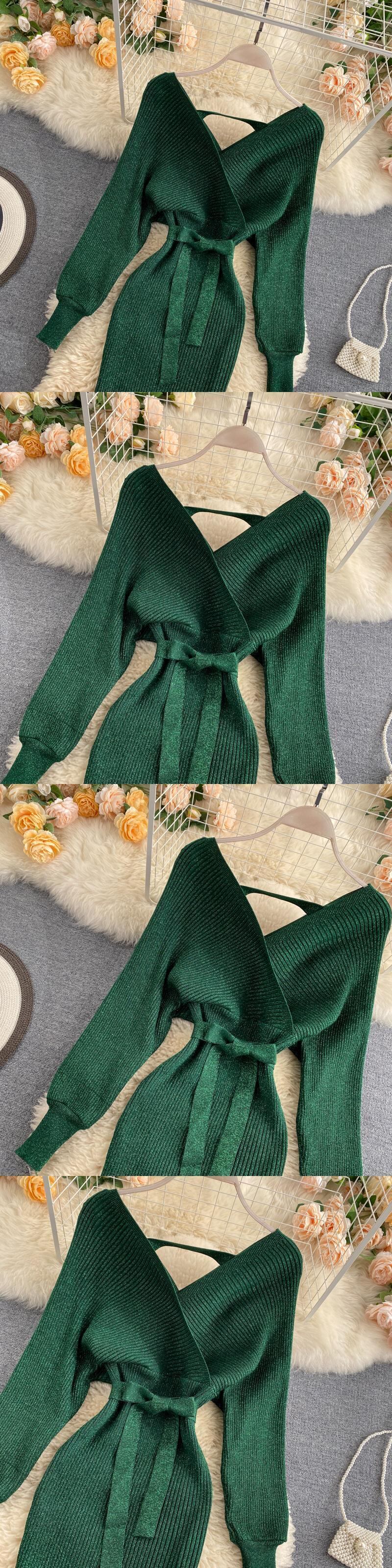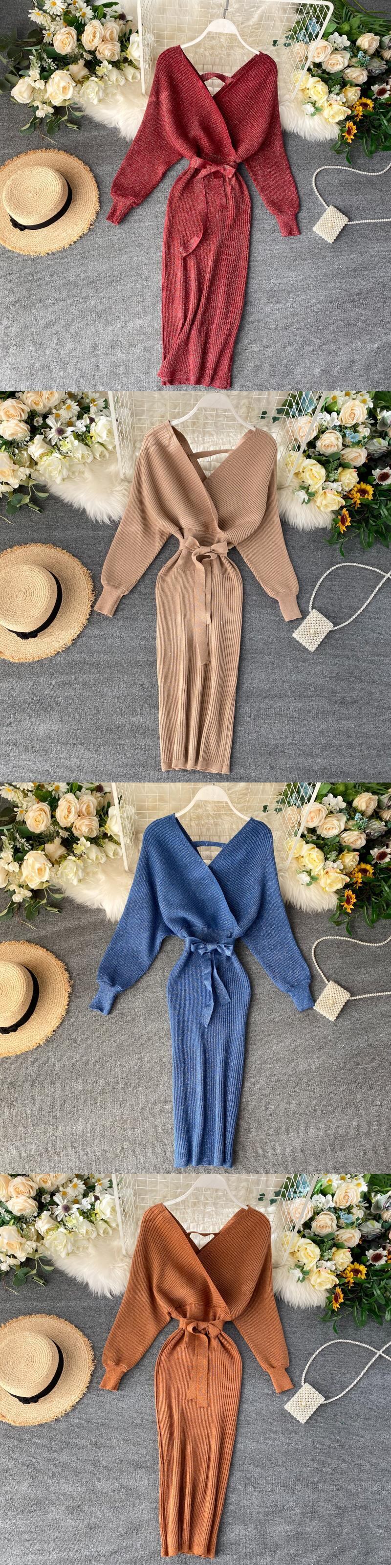 Nomikuma ドレス女性 2022 秋冬 V ネックスリムウエストチュニックニット女性ドレスセクシーな Vestidos オータム 秋物 ウィンター 冬物 Vネック kor44030601820