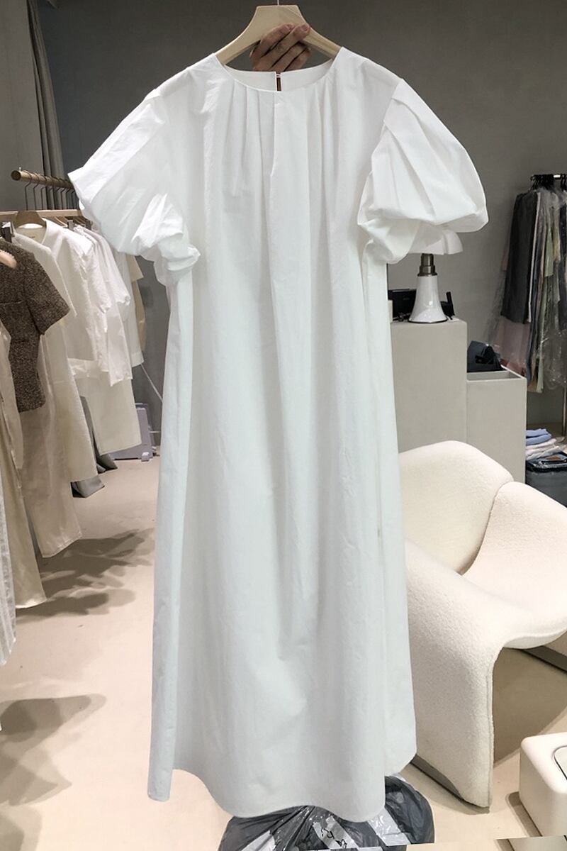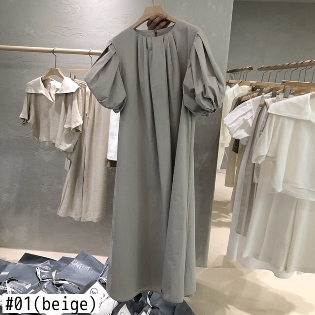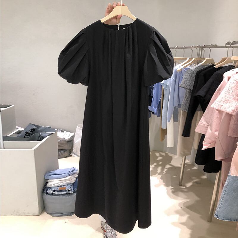 Nomikuma 女性ドレス 2022 夏ランタンスリーブひだ O ネックドレス因果無地 A ライン甘い Vestidos デ 大人ガーリー スウィート キュート カジュアル サマー 夏物 Oネック Aライン ソリッドカラー kor29535618346