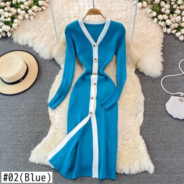 ノミクマ コントラストカラー スリム ボディコン ニット Vestido Feminino セクシー ロングドレス Vestidos es Para kor34322558382
