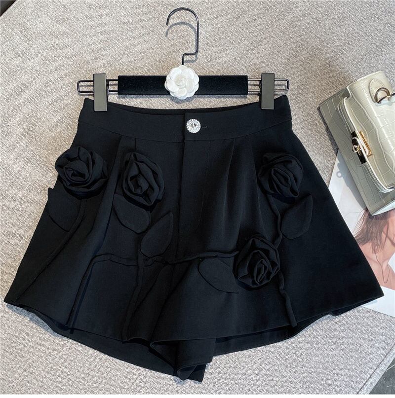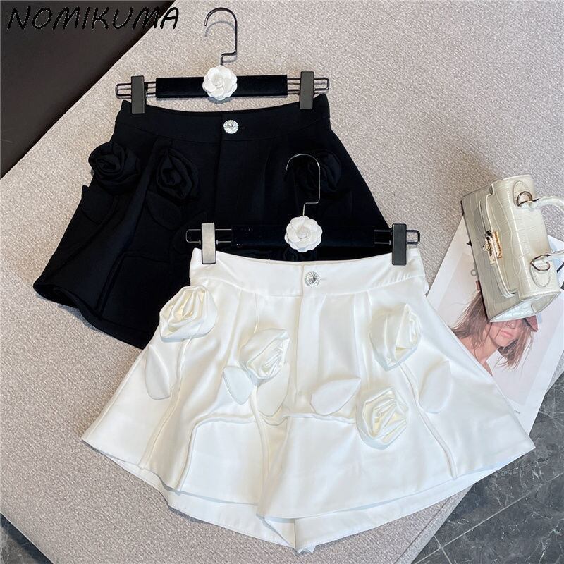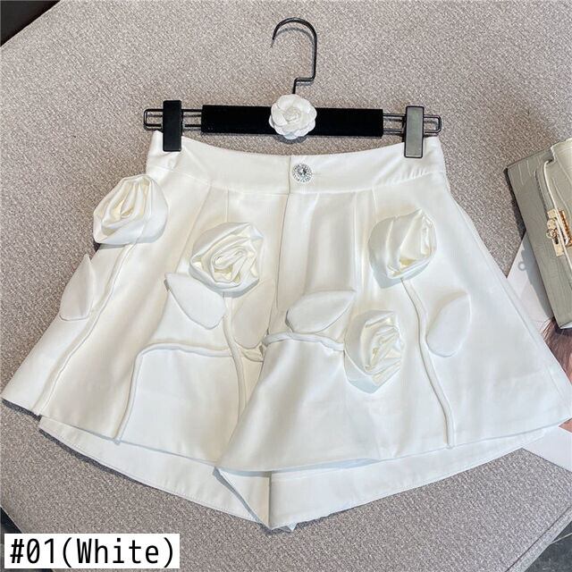 Nomikuma スウィート 3D 花スカート レディース 2022 夏 ボトムス ウエスト Aライン ショートパンツ スカート ファルダス 大人ガーリー キュート カジュアル サマー 夏物 ショーツ ブルマー フラワーデザイン kor15984491975