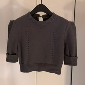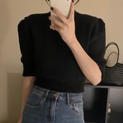Nomikuma 2022 秋のショートプルオーバーニットシックなパフスリーブ O ネックの女性セーター因果スタイルニットプルトップス オータム 秋物 Oネック kor62231260050