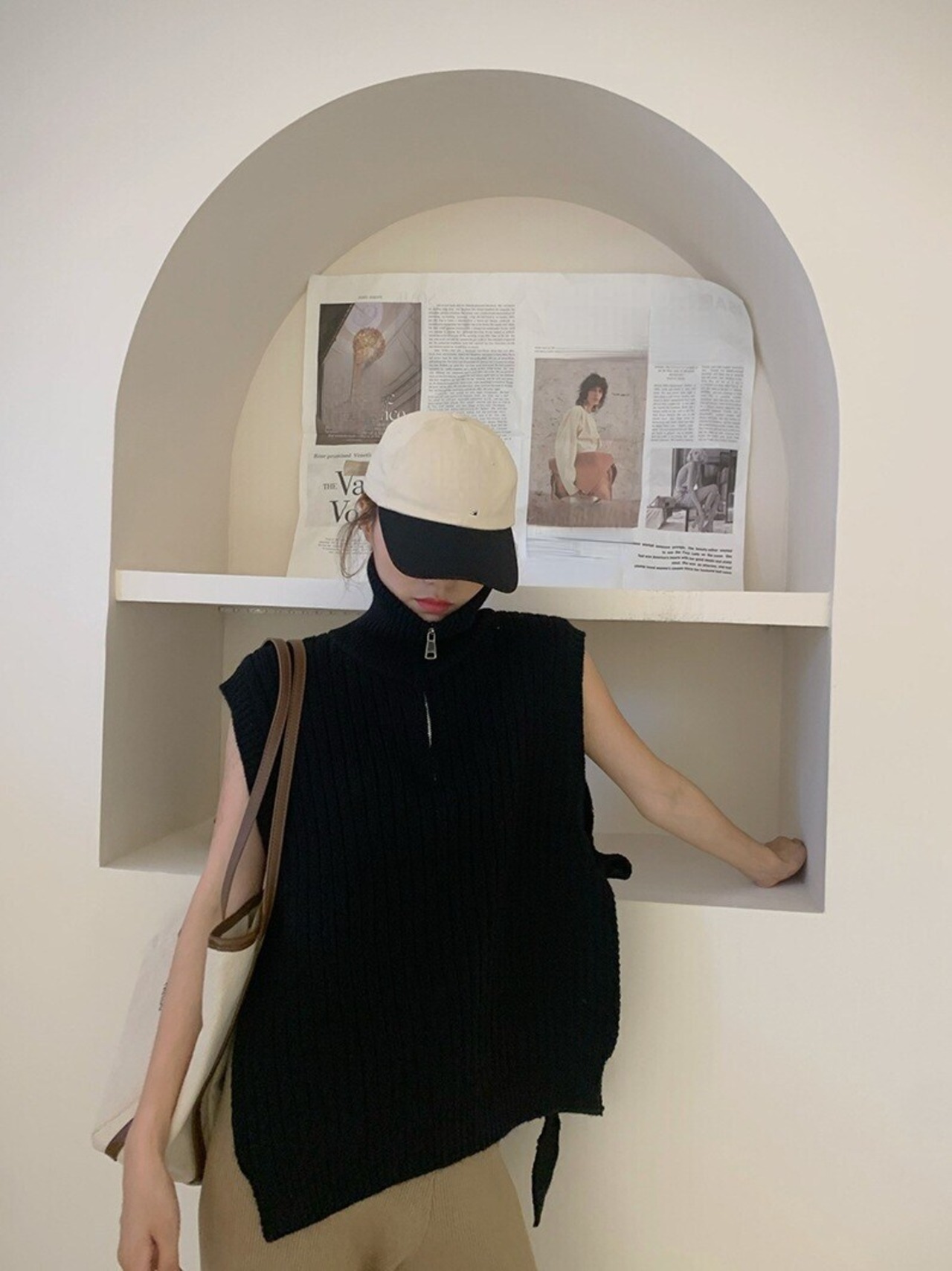 Nomikuma ジッパータートルネックノースリーブセータープルオーバー包帯 2022 秋ニット Ves 因果女性チョッキ オータム 秋物 kor26712994089