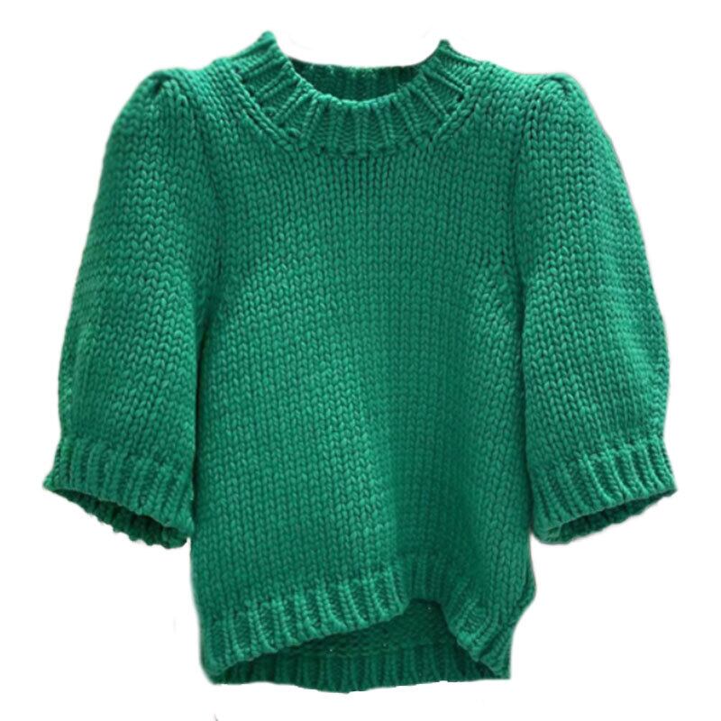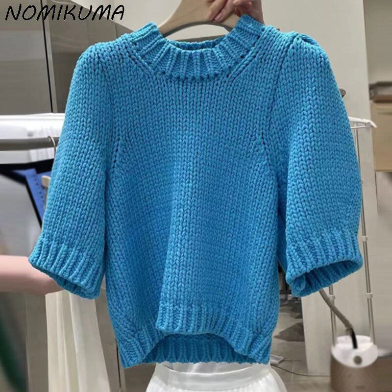 ノミクマプル秋 2022 O ネックシックなパフスリーブニットウェアプルオーバートップス女性因果ニットセーター オータム 秋物 Oネック kor3286096617